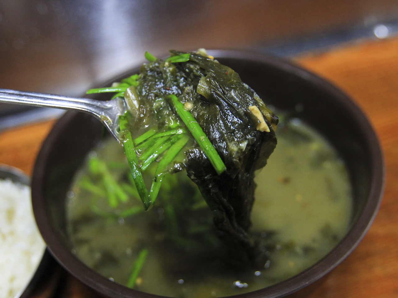 K PAX 달리는나무늘보시락국은 시래깃국의 방언이다. 통영에선 장어뼈로 우려낸 국물로 시락국을 끓인다. 통영에 그렇게 자주 왔는데 서호시장 시락국밥집을 처음 온거 같다. 통영시립박물관, 통영항여객선터미널에서 가깝다. 식당 안 모습이 무척 독특하다. 재래시장 보리밥집처럼 긴 테이블 가운데에 다양한 반찬들이 놓여있다. 비치된 접시 하나를 들고 먹을만큼만 조금씩 담으면 된다. 접시를 찬 종류별로 다 꺼내서 한접시에 한가지씩 집어 담는 사람들이 있는데, 그러면 안된다. 누가 뺏어가는 것도 아니고, 더 먹지 못하게 하지도 않는다. 우선 맛 볼 만큼만 담아 맛보고 더 먹고 싶으면 더 담으면 된다. 제발. 조선시대인가 고기잡이 갔다가 일본에 표류한 사람들이 꽤 있었다. 당시 일본은 표류한 조선인들이 송환 될 때까지 체류를 도왔다. 하루는 송환을 기다리던 한 조선인이 일본인이 집에서 나와 고기를 잡는 것을 봤다. 고기를 딱 한두마리 정도만 잡아 집으로 들어가더란다. 그래서 고기가 많은데 왜 왕창 잡지 않고 딱 고만큼만 잡냐고 물었단다. "오늘 먹을 양은 이거면 족하지요" 일본인이 그러더란다. 접시도 많고 반찬은 많지만 접시는 하나면 족하고, 반찬은 먹을만큼이면 족하다. 제발. 반찬 그릇 부자가 되고 싶은 사람들이 꽤 있었나보다. 반찬 그릇은 1인당 1개 사용해달라고 부탁하고 있다. 성질 급한 일행은 저걸 못봤다. 벌집 따먹는 곰처럼 접시를 잔뜩 끌어 안고 있네. 제발. 뭐 몰랐으니 그럴수도 있지. 그나저나 맞은편으로 피신한게 신의 한수였다. 나까지 민망할 뻔. 앉아 기다리면 밥과 시락국이 나온다. 시락국 가격은 7천원이다. 공기밥과 국물이 부족하면 리필이 된단다. 혜자롭기 그지없다. 산초, 방아 다 넣어줬다. 멸치젖 하나, 깍두기 일단 맛보고. 시락국이 깊고 묵직한 맛이 있다. 장어뼈의 힘인가 보다. 아침 식사로 아주 딱이다. 점심에도, 저녁에도 괜찮겠지만. 사진에서 오른쪽은 멸치젓 통영 왔으니 멸치젓 먹어줘야지. 짭짤하다. 멸치젓을 먹을 요량이면 국에 간장다대기는 넣지 않는 편이 좋다. 잘못하면 소태* 될 수도 있다. *소태: 사투리로 짜다는 뜻. 서호시장에도 싱싱한 해산물이 많네. 원조시락국은 통영농협본점 맞은편 서호시장입구1 쪽에 있다. 지도에 표시된거보다 살짝 왼쪽편이다. 처음에 지도 보고 시장 안으로 들어갔는데 안이 아니라 입구 쪽에 가까이 붙어 있다. 전에 먹었던 통영의 굴떡국도 맛있었는데 시락국도 꼭 먹어볼 만한 음식이다. 이제 욕지도 가는 배를 타러 가보자. -다음...