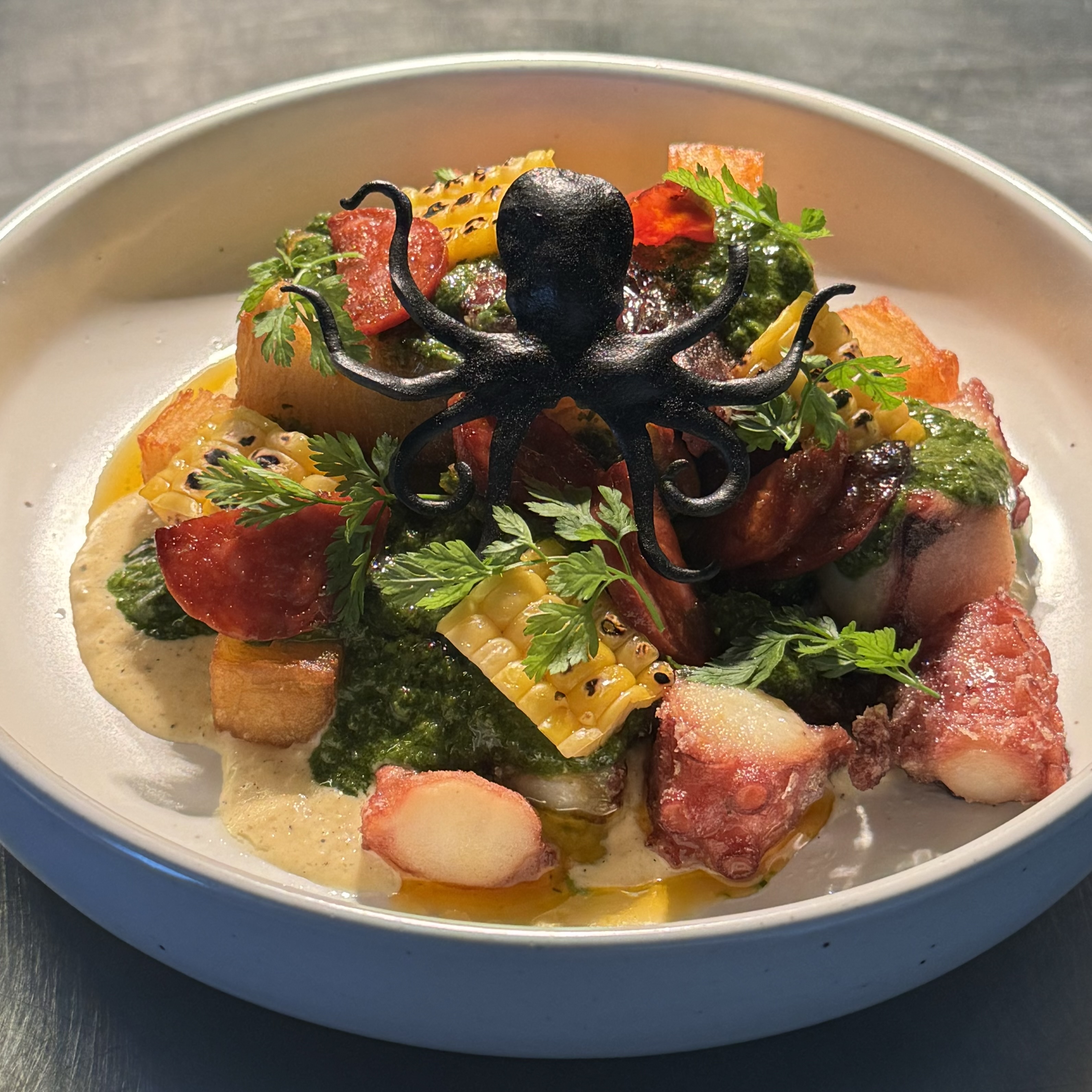 dus****비가 와서 그런지 맛있는거 먹고 싶다는 생각이 더더욱 들어서 마느에 왔습니당 :) 뽈뽀는 올때마다 주문하는거 같은데, 허브 중심의 소스가 향긋해서 좋았어요~! 문어도 질기지 않고 감자의 익힘이 재밌네요 ㅎㅎ 먹물 리조또는 처음인데, 위에 올라간 오징어 튀김이 바삭했고 함께 나온 디핑 소스에 찍어 먹으니 짱맛!!! 그리고 리조또에 살짝 매콤한 맛이 아보카도 퓨레랑 잘 어우러져서 느끼함 없이 싹 먹었어요~! 사워도우랑 샐러드는 에피타이저로 깔끔~! 잘먹었습니당 ㅎㅎ