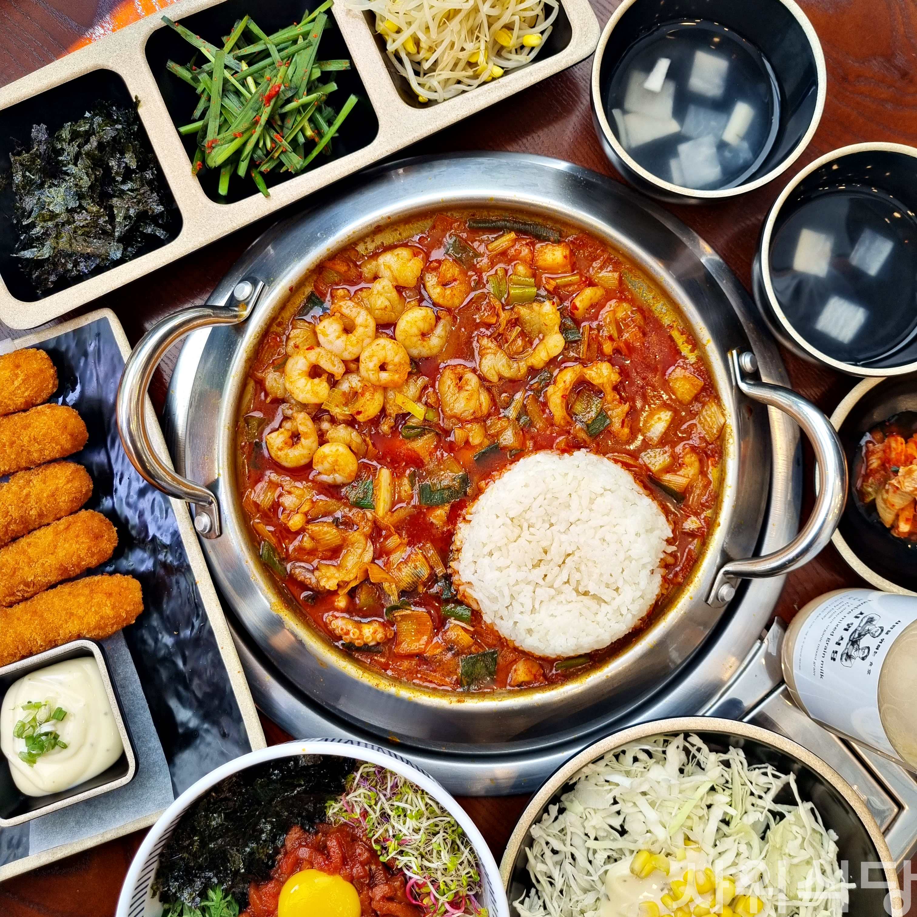 2년 전 여의도에 처음 놀러왔을 때 타지에 사는 언니와 함께 와서 먹은 경험이 너무 좋았어서 다시 방문했어요! 여의도 물가가 비싼데 여기는 가성비도 좋고 양도 많고 맛집인 만큼 많은 사람들이 다녀가서 그만큼 재료 회전율이 빨라 재료가 신선해요! 해산물이나 고기에서 냄새날까봐 걱정하는 경우가 있는데 사위식당은 믿고 먹는 브랜드이고 TV에도 소개될 만큼 유명한 맛집이어서 안심하고 먹습니다 ㅎㅎ 가게 안에 토핑 야채가 셀프 샐러드바에 다양하게 구비되어있고 옷걸이나 냄새나는 걸 방지하기 위해 섬유탈취제와 이쑤시개도 계산대에 마련되어 있는 센스가 보이더라고요😊 저도 서울 사람이 아니지만 낙곱새 먹기 위해 여의도에 올 만큼 맛 보장합니다! 매운정도도 선택할 수 있고 사이드로 육회, 전, 만두, 대게튀김까지 있어 좋아요
