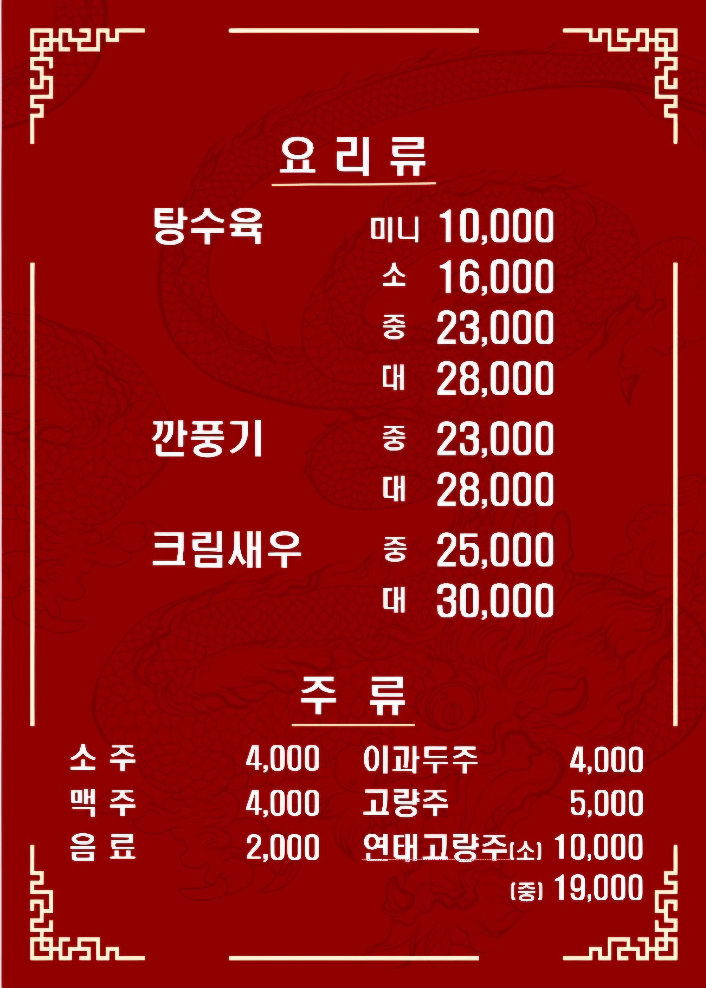 - 탕수육 28,000원