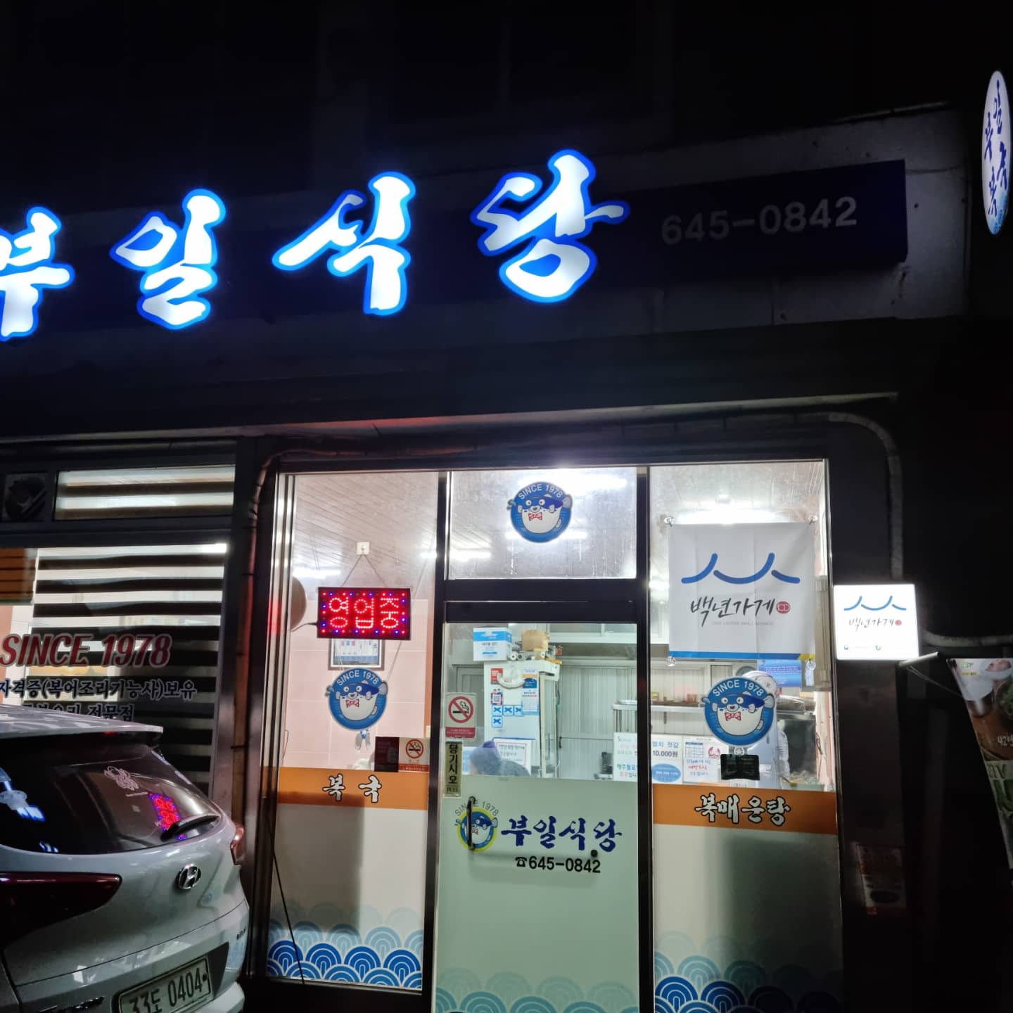 까미어찌저찌 연말 클로징을 하고 남편과 즉흥적으로 통영으로 1박 2일 여행을 옴 아무 계획도 정보도 없이 우선 남편은 통영에서 낚시를 하고 싶다는 니즈로 나는 통영바다 보면서 멍때리고 싶다는 이유로 (올해 우리 둘다 넘나리 기빨린 한해였다 ㅋㅋㅋ) 각자의 니즈로 어제 밤 11시에 통영으로 출발- 남편은 통영의 작은 항구에서 새벽 다섯시부터 낚시배를 탔고, 나는 차에서 눈을 좀 붙였다가, 항구에서 시내로 나오는 첫 버스를 타고 시내로 나옴 ㅋㅋ 각자 통영에서 하루는 하고싶은거 각자 하면서 보내기로 함 ㅋㅋ 첫버스를 타고 시내로 나오니 출출해서 바로 아침먹으러 고고 통영은 뱃사람들이 많은 도시여서, 배를 타시는 분들을 위해 새벽 일찍부터 하는 밥집이 많은편 뭘먹을까 고민하다가 통영의 명물인 졸복국을 먹기로 하고 서호 시장으로 고고 무려 13년째 블루리본 맛집이자 백년식당인 부일식당에서 복국으로 아침을 먹음 #매우성공적 통영 졸복국 맛집 부일식당 운영정보 위치 통영 여객선터미널 근처 서호시장버스 정류장에서 내려서 시장골목으로 따라 들어오면 됨 운영시간 화-일 새벽 6시 - 오후 3시 휴무일 매주 월요일 (월요일이 공휴일일 경우 화요일 휴무) 주차 여객선터미널 주차장 1시간 무료 주차 화장실 가게 내에 있음/남녀 공용 1칸임 깨끗해서 ok 통영 졸복국 맛집 부일식당 매장 내외관 시장골목에 위치하고 있음 시장 메인골목에서 나와서 음식점들 모여있는 곳에 있음 귀여운 복어 그림이 1978년부터 거의 50년가까이 영업중인 집임을 나타내고 있음 여기도 #백년가게 임 그리고 2013년부터 무려 13년이나 블루리본을 연속으로 받은집 엄청 오래된 집인데도 관리를 잘 하셔셔 매장이 매우 깨끗하고, 화장실도 깨끗해서 매우 맘에 들었음 노포는 맛있고 다 좋은데 화장실이 문제인 곳이 많은데 여긴 깨끗해서 넘넘 좋았음 메뉴는 매우 심플함 복국 소짜/대짜 복매운탕 복찜 맥주는 카스만 있다고 하심 ㅋㅋㅋ (나는 비몽사몽이라 안먹었는데 뒤에 커플이 맛나게 드시더라) 나는 안매운 복국 소짜 (=복지리)를 시킴 영업시간은 오전 6시부터 오후 3시 브레이크는 없다 ㅋㅋ 항구도시 답게 물때 달력이 크게 걸려있음 (나는 어쩌다 물때 달력임을 알아보는 것인가!!!!) 통영 맛집 부일식당 음식 1인상 혼밥이라 안된다고 할까봐 살짝 쫄았는데 다행히 너무 친절하게 혼자도 괜찮다고 해주심 (감사합니다!!!) 가끔 지방엔 혼밥이 안된다고 하는 곳들이 있음 ㅠㅠ 정감가는 은쟁반에 반찬이 한상 정갈하게 담경옴 기본...