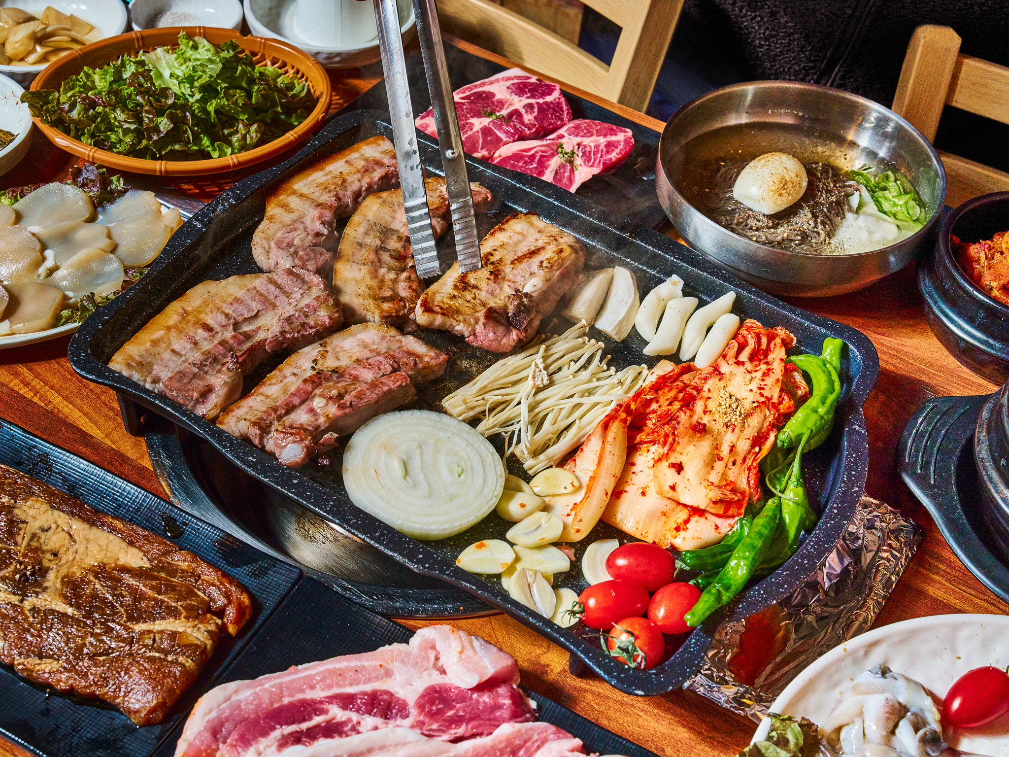 가디에서 쇼핑 후 저녁으로 먹고 싶어서 예약 후 방문했어요! 숙성된 고기라 그런지 엄청 부드럽고 오징어도 쫄깃하니 진짜 맛나요. 파무침이 별미여서 두부에 싸먹으니까 순삭하게 되네요ㅠ 담에 또 재방문하려구요!!!