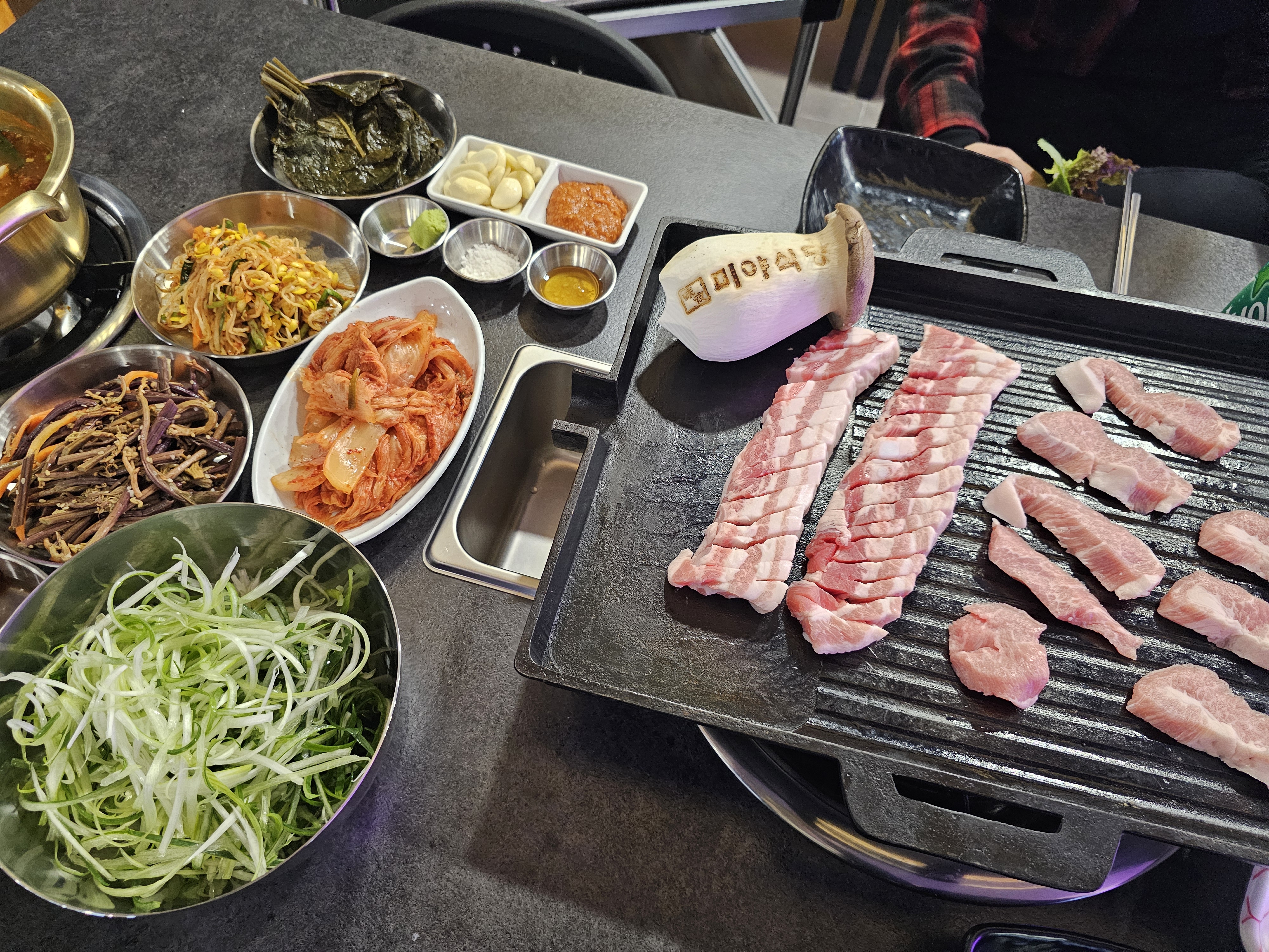 뀰뀰돼뀰고기 직접 고를 수 있고 기본반찬도 잘나와요 기본으로 된장찌개 나오는데 안에 두부랑 꽃게도 아낌 없이 들어있어요 기본찌개라고 믿기지 않는 비주얼 채소 등 부족한 반찬은 셀프바 이용으로 편합니다 고기 냄새 안나고 전체적으로 맛있고 너무 좋습니다