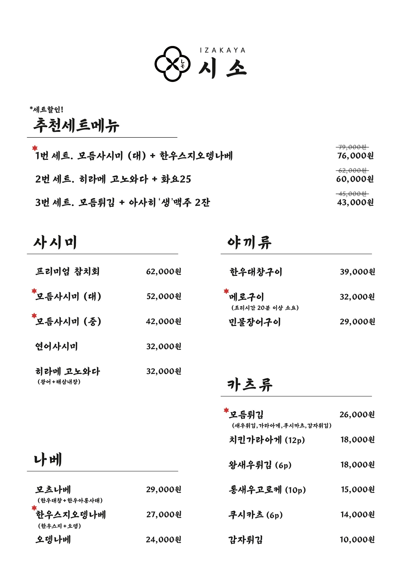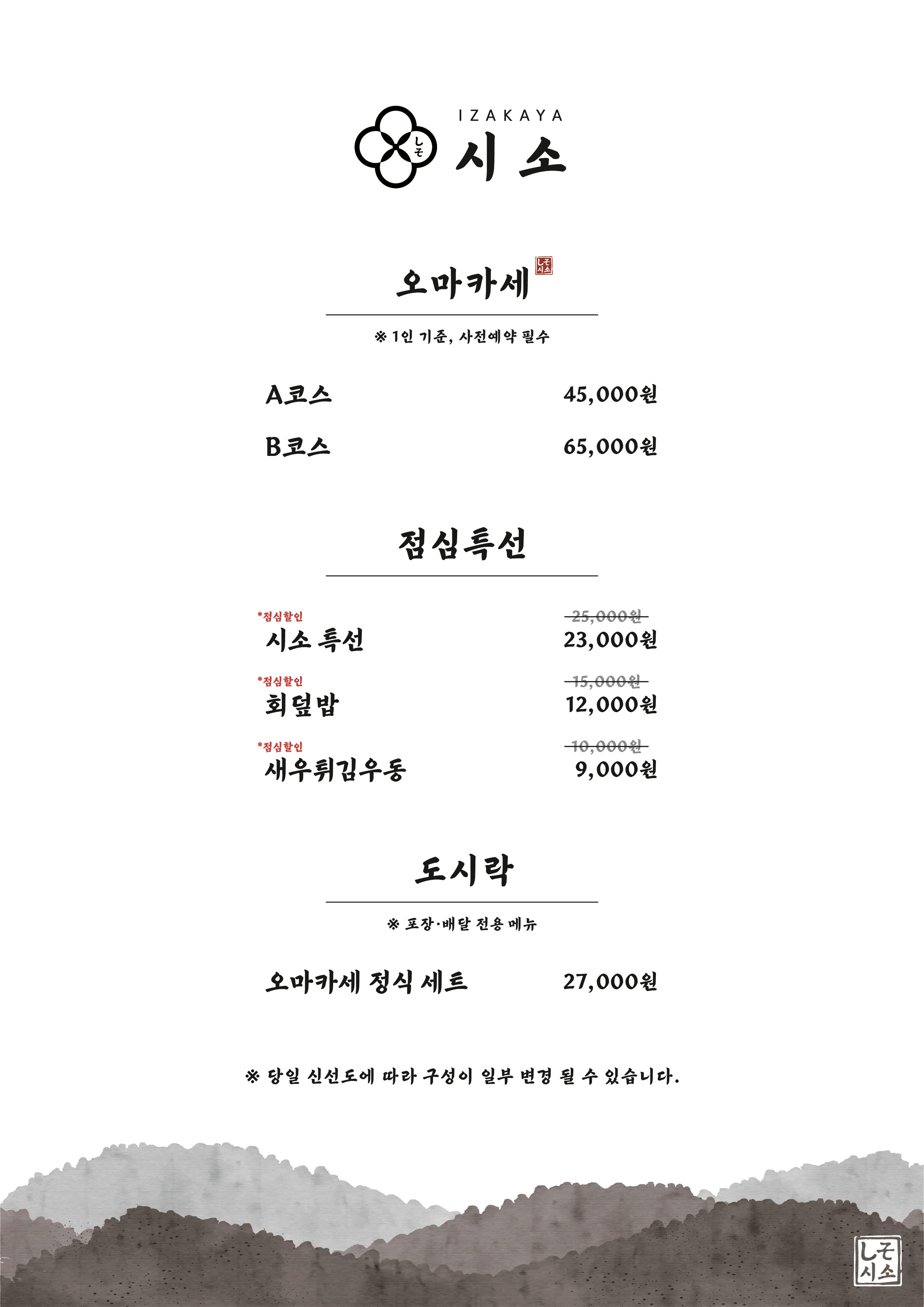 - 오마카세 B코스 65,000원