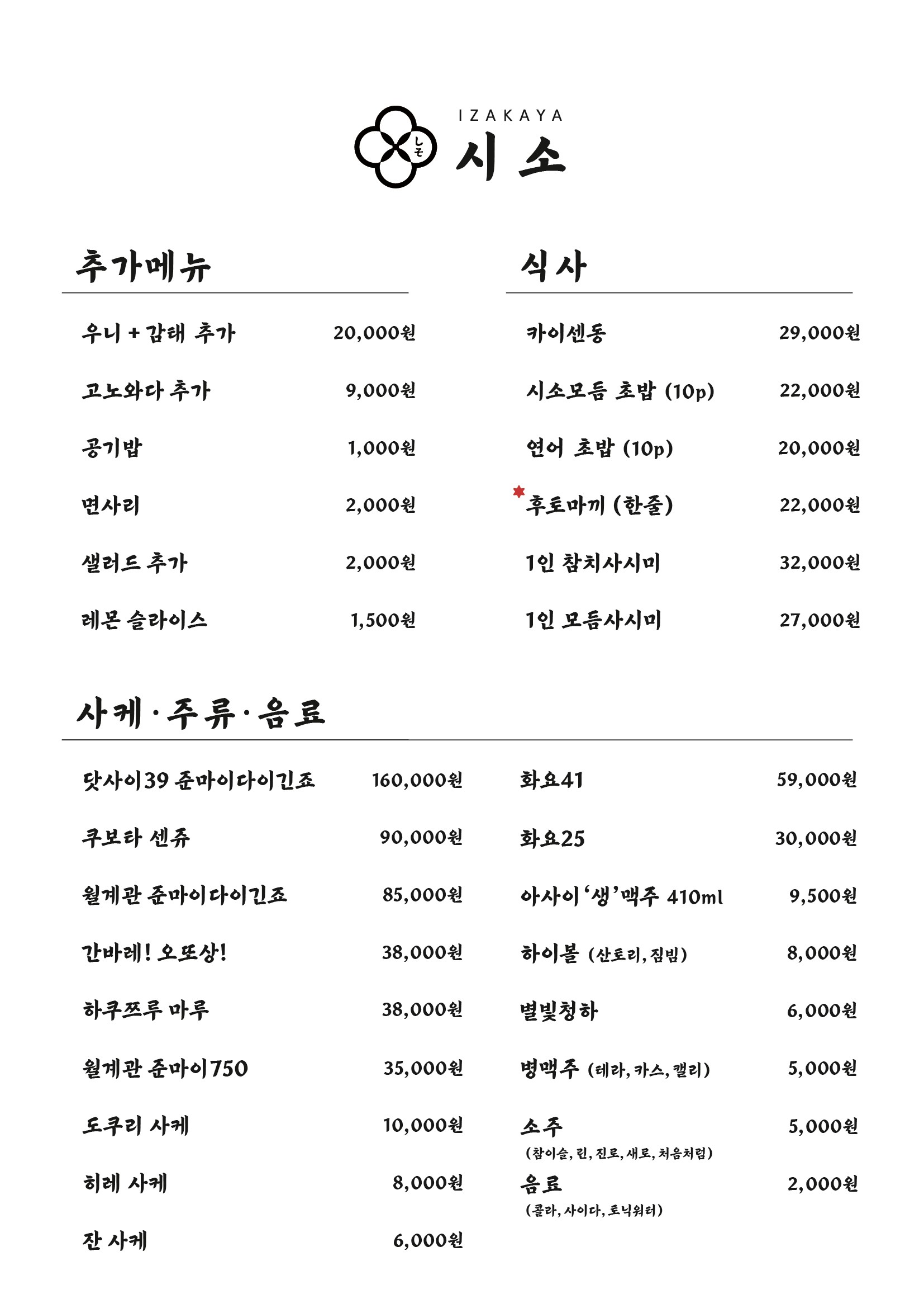 - 시소 특선 25,000원