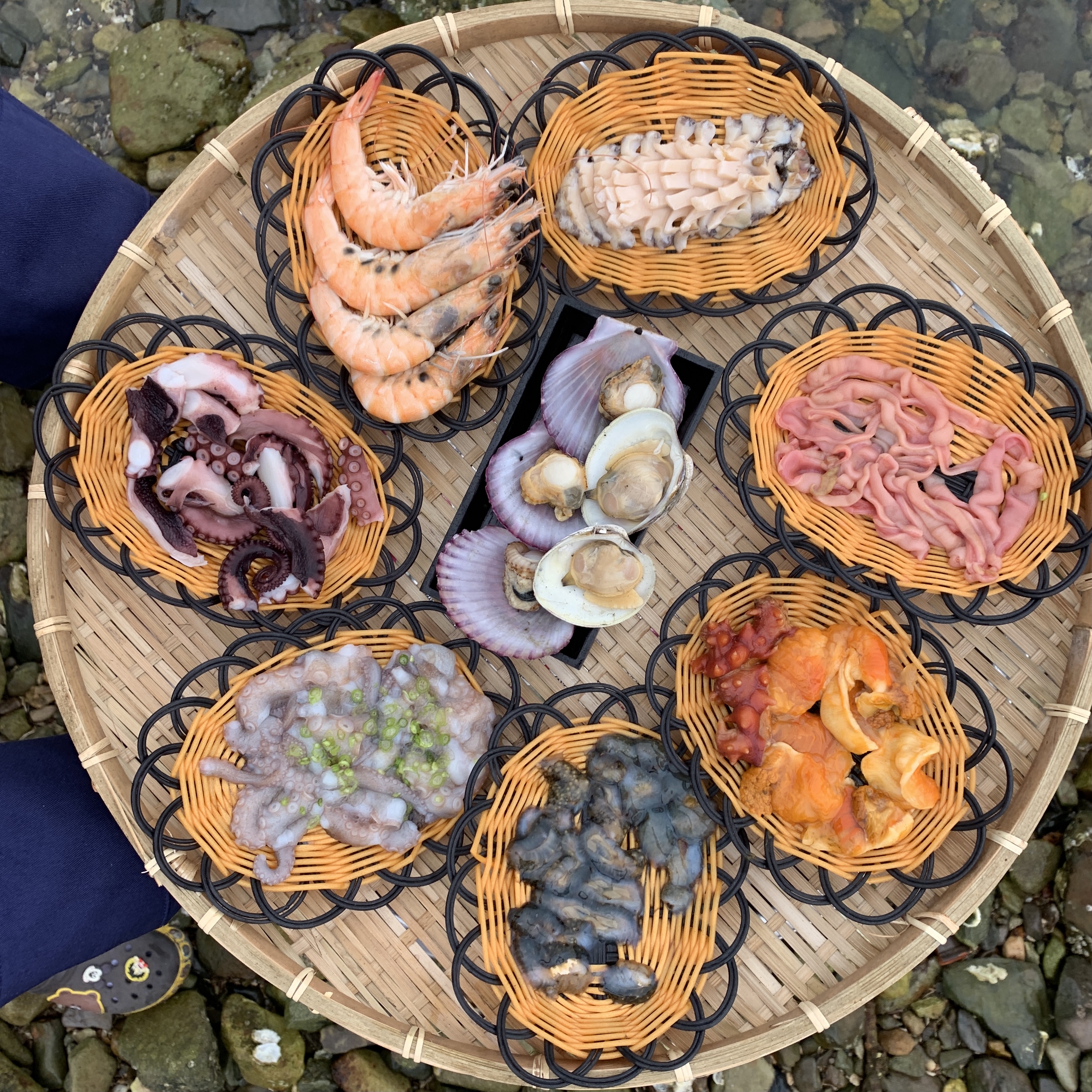 타고난똥전복은 버터향 살짝 입혀서 구워 나온 느낌인데, 겉은 살짝 고소하게 익고 속은 쫄깃탱글… 거기에 깨랑 허브 올라가서 향까지 좋음. 그냥 먹어도 맛있고, 씹을수록 바다맛 제대로 올라오는 스타일. 한상 차림도 구성 미쳤네👇 새우, 문어, 멍게, 조개, 소라까지 종류 다양하게 나와서 골라먹는 재미 있음. 하나씩 집어먹다 보면 술 안 시키기 힘든 구성ㅋㅋ 그리고 숨겨진 메인 👉 전복 칼국수 이거 국물 시원~하고 깊은데, 전복 들어가서 감칠맛 확 올라오는 스타일. 해산물 먹고 마무리로 딱 좋음.