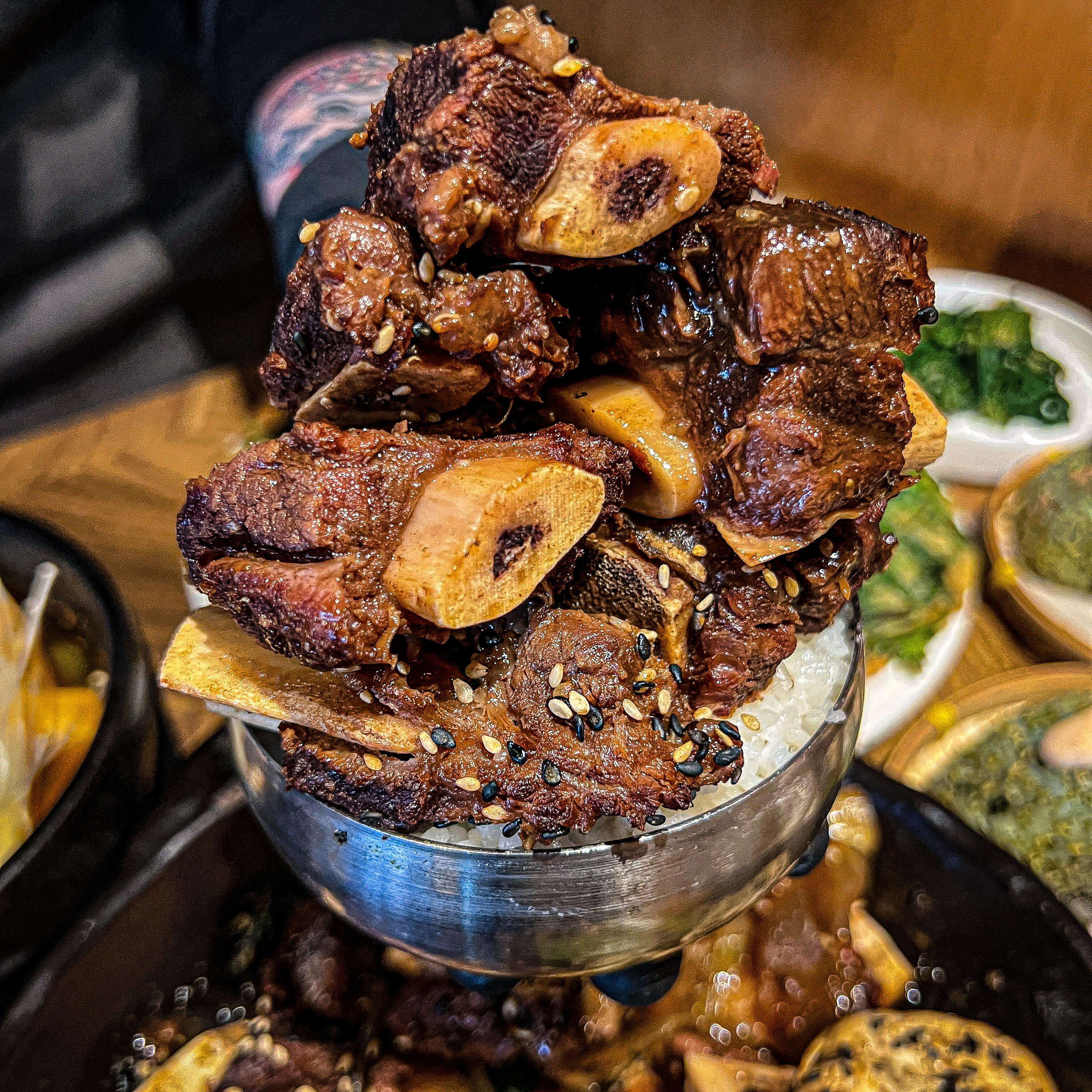 퍄파태태랑 오랜만에 경주여행 다녀와서 남기는 맛집 후기 영업시간: 10:30-21:30 (15:00-16:00 브레이크타임) 저녁으로 뭘먹을까 고민하다가 후기와 리뷰가 많아서 방문 하게 됨 평소에는 웨이팅이 많아서 근처에 별관까지 내셨다는거는 보고 더 믿게 됨 주차장은 따로 없어서 근처 골목에 하고 갔어요! 티비에도 출연 하셨대요 대표메뉴 실내에 웨이팅 장소가 있어서 여름에도 겨울에도 덥고 춥지 않게 대기 할 수 있는 공간이 꽤나 커요 ! 웨이팅은 캐치테이블로 하더라구요 현장 웨이팅만 받는거 같았어요 저희는 조금 늦은 시간에 가서 웨이팅 없이 바로 입장 가능 했습니다. 자리에 앉으면 키오스크로 주문하고 바로 결제까지 가능해서 편리했어요 ! 저희는 2인세트 주문했고 소갈비찜 양념은 간장or 고추장 선택 할 수 있는데 주변 테이블이 거의다 간장 드시는거 같아서 간장으로 주문 했어요 그리고 세트에는 주먹밥이 포함되어 있는데 명란마요or 참치마요 선택 할 수 있어요 셀프코너가 마련되어있구요 셀프코너에는 앞접시, 물, 컵, 물티슈, 앞치마가 있어요 기본 반찬과 세트에 포함되어 있는 참치마요와 김가루밥이 나왔어요 양파 밑에 있는 순두부가 맛있더라구요 참치마요 주먹밥 안에도 참치가 꽤나 들어있었어서 오.. ! 했었던 낙지새우전 얇게 전을 구우셔서 바삭바삭 맛있었어요 양파간장에 찍어먹으니 딱 좋았어요 간장 양념의 소갈비찜 맛있었지만 저랑 태태 입맛에는 약간 슴슴했던 다음번에 방문하게 되면 고추장 먹어보자 ! 라고 했어요ㅎㅎ 그래도 고기도 질기지 않고 좋았습니다 한우 짜글이 진짜 짜글이 맛집.. 고기도 엄청 많이 들어있고 태태랑 저랑 둘다 짜글이가 정말 맛있다고 거의 다 퍼먹었어요