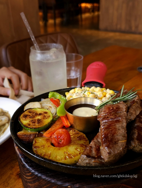 써니5184집 근처라서 자주오는 곳인데 새로운 메뉴가 나왔네요~ 그래서 바로 주문해서 먿어봤지요~~😄 역시나 우리 동네 코지하우스는 메뉴 선정도 잘 하는듯해요~ 달콤하고 약간 매콤한 듯한 동파육스테이크~다음에 오면 또 주문해야겠어요~ 함께 방문한 친구도 맛있다고 좋아했거든요~👍
