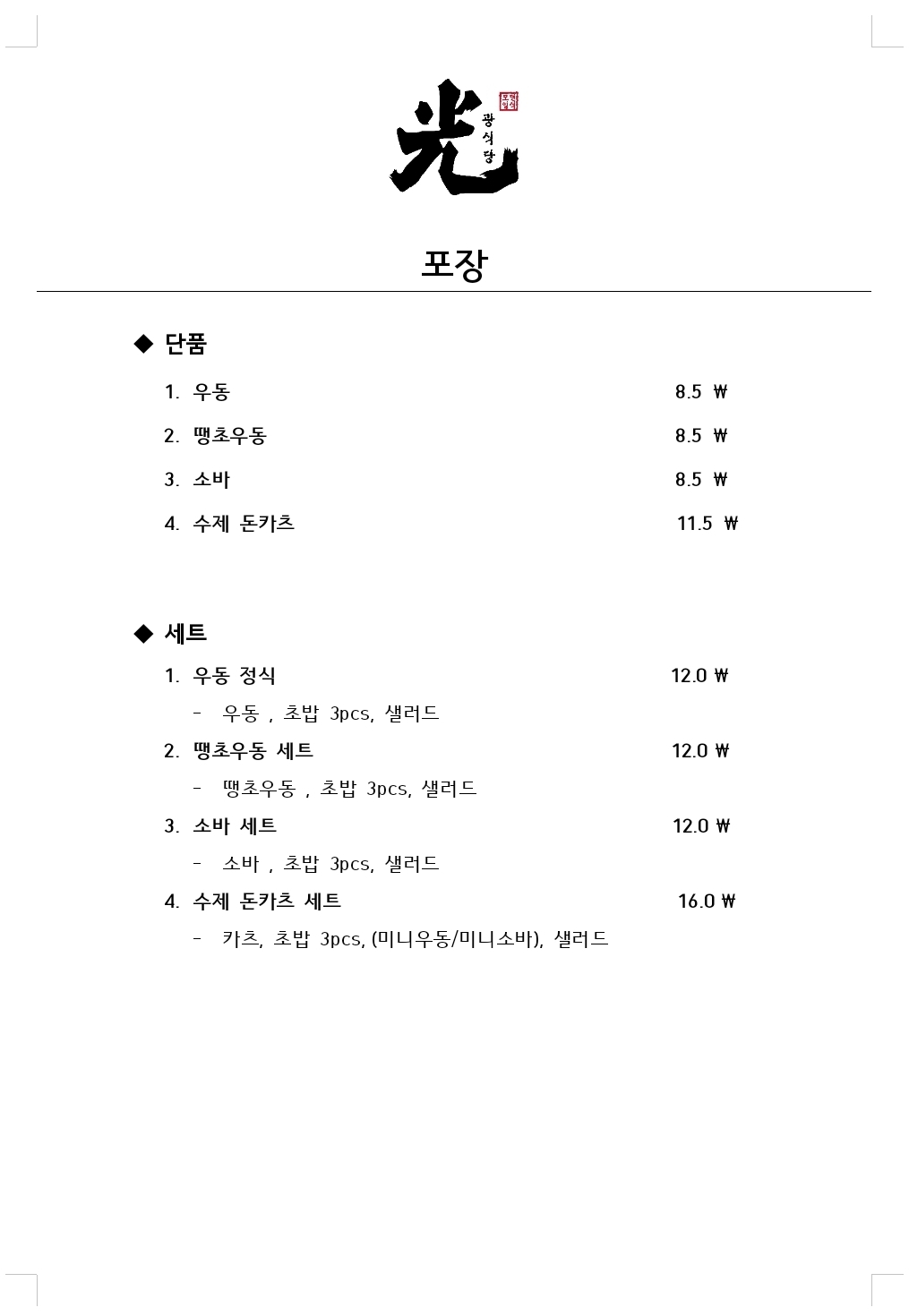 - 우동(단품) 8,500원