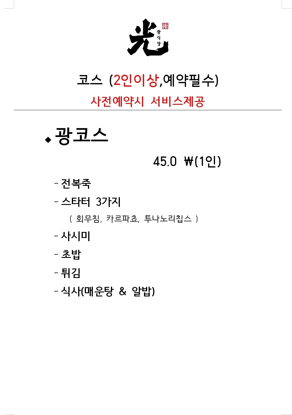 - 광코스 45,000원