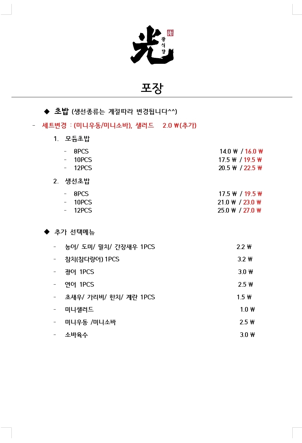 - 초밥정식(점심특선) 15,000원