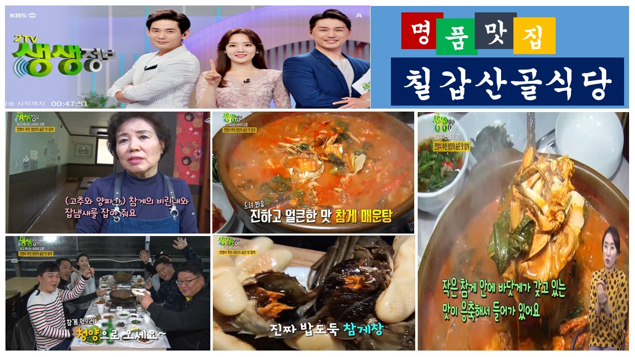 Jammy0102안녕하세요! 충청도 청양 칠갑산 맛집 칠갑산골 소개드립니다! 칠갑산에 맛집이 진짜 많아요 ㅎㅎ 산 밑에 있는 맛집이라하면 오리백숙/백숙은 기본 중에 기본이라서 이번에는 TV에도 나왔었다고 하는 칠갑산골에 방문하게 되었습니다! 위치는 칠갑산 공원 쪽에 있습니다! 칠갑산골에서 유명한 메뉴는 참게를 이용한 요리들인데, 제가 먹은것은 참게매운탕이었습니다! 여러 후기들을 살펴보니 참게매운탕이 제일 후기가 좋고 많더라구요! 상차림도 아주 정갈하게 잘 나옵니다~ 나물들이 하나같이 안짜고 섬섬하니 너무 맛있더라구요~ 여기에 고추장 넣고 밥비벼먹으면 환상일것 같다는 생각이 들었습니다ㅋㅋㅋ 참게매운탕이 나왔는데, 국물은 된장+고추장 맛이 둘다 은은하게 나는 맛이었고 아주 매콤합니다! 시레기도 많이 들어있고 참게가 일단 너무 많이 들어있었어요!ㅎㅎ 참게 먹다가 지칠 정도로 많이 들어있어요! 저희는 (小)자로 주문했는데 이게 소자..? 라고 생각들 정도로 진짜 엄청 많아요! 2-3인용인것같아요~! 하지만 결국 싹싹 긁어먹었습니다..ㅋㅋ 공기밥은 별도라 따로 시켰는데 밥이 빠지면 섭하죠?ㅎㅎ 진짜 술안주로 제격인 참게매운탕이지만, 해장으로도 아주 탁월할 것 같습니다>< 충청남도 청양 칠갑산쪽 가실 때 들려서 식사하고 가시면 좋을 것같아요~!