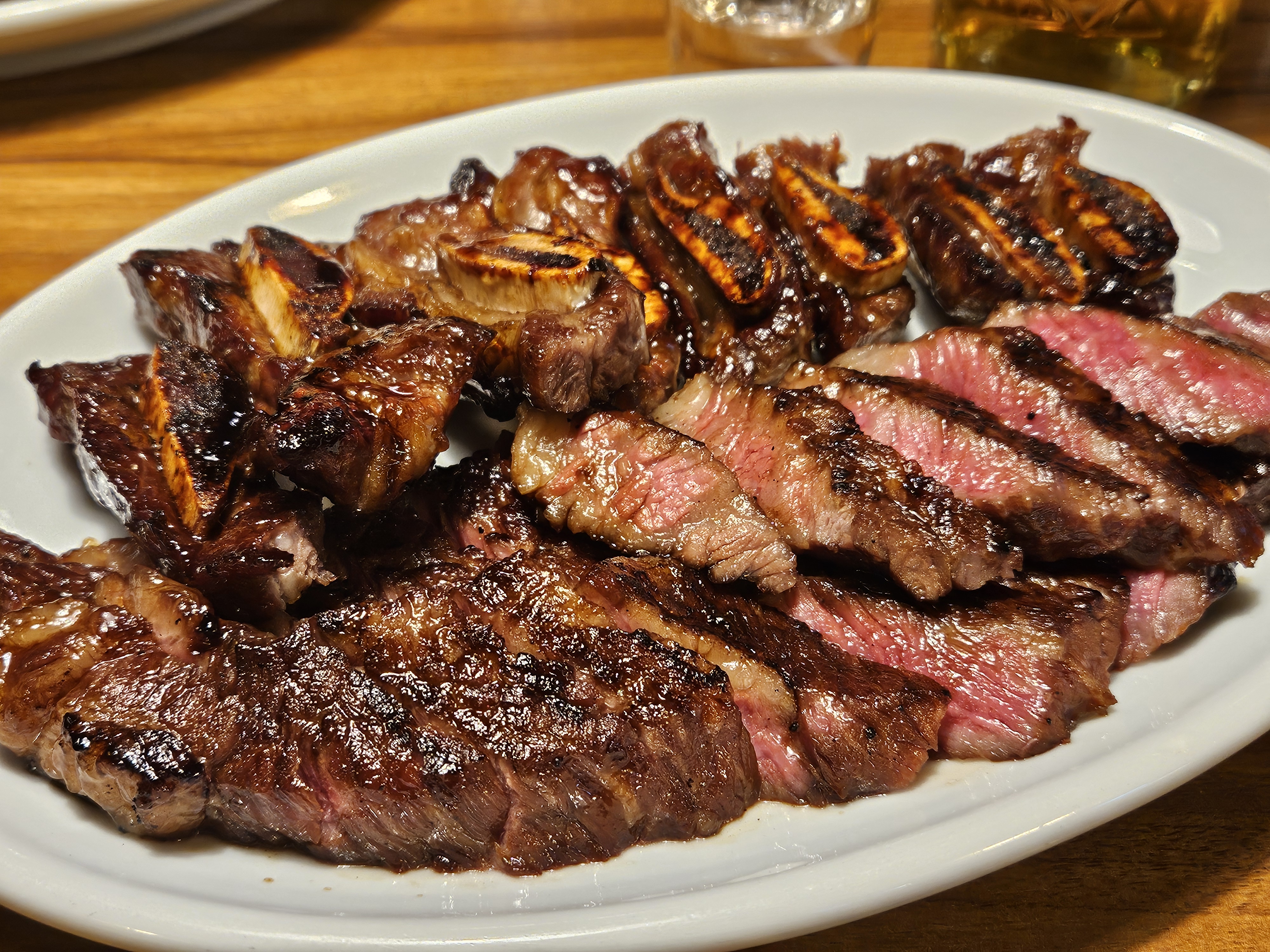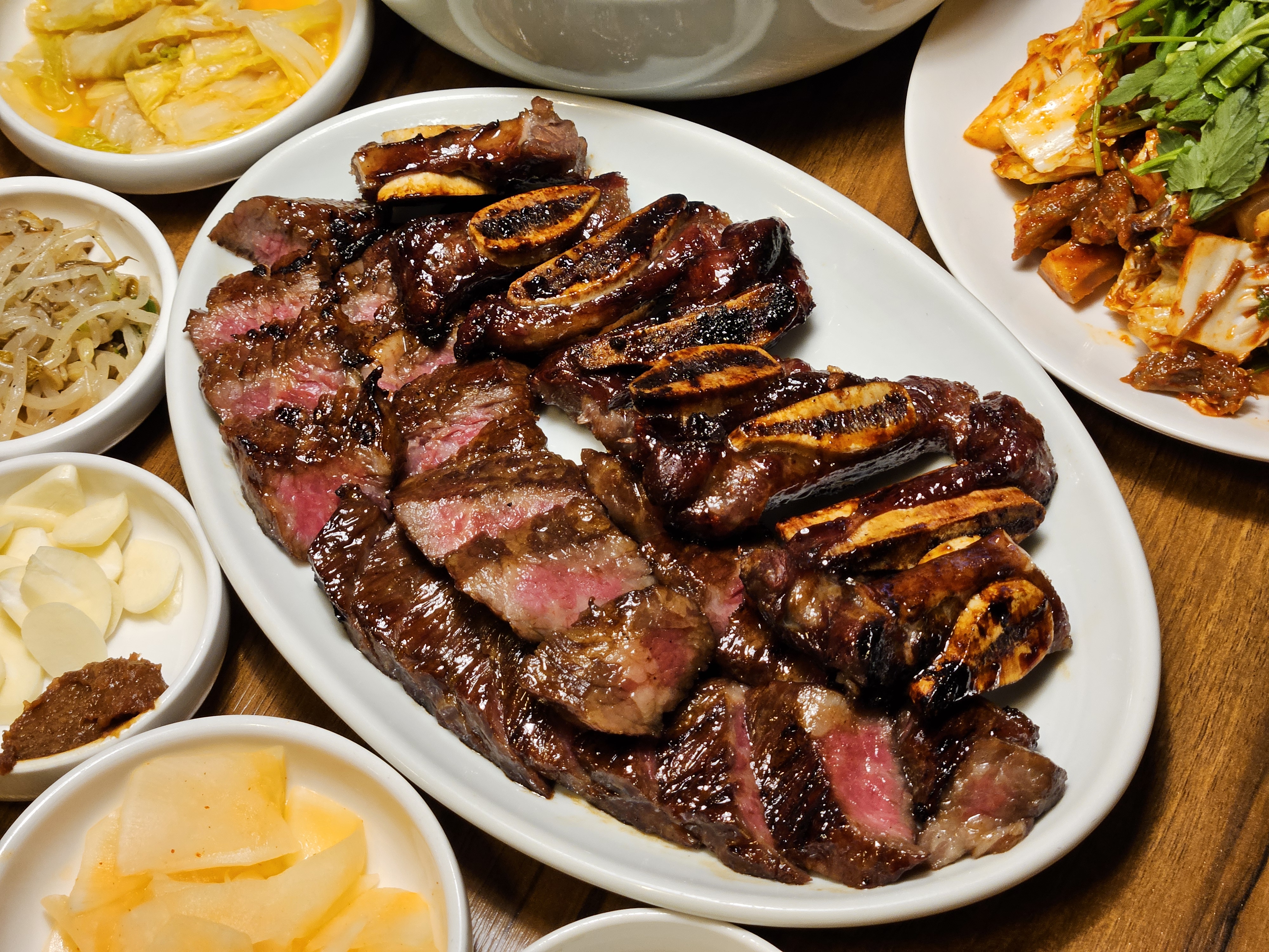 Chloesong참나무소갈비3인분+전골+미나리무침 셋트에다가 평양냉면,소불고기,비빕냉면 후식까지 된장찌개도 시킴! 막걸리 한병 맛보고 일품진로로 변경!!! 제 개인적인 1등은 참나무소갈비 였고! 흰밥에 같이 먹으니 꿀맛!! 뼈에 붙은 살 뜯어먹는 재미도 있어요! 2등은 전골!! 국물이 시원하고 야채랑 버섯 고기도 잘 어우러지는 담백한 전골 국물!!! 3등은 평양냉면!!! 첫 도전을 이 식당에서 도전해보시는것도 괜찮을꺼 같아요!! 깔끔하고 시원하고 면도 적당히 탱글하고!! 5명이 먹었는데 아주 만족했습니다! 음식이 빠르게 소진 되는거 같아요~ 미리 연락하고 가시는걸 추천드립니다!아니면 저희처럼 11시 오픈런 하세용 ~~