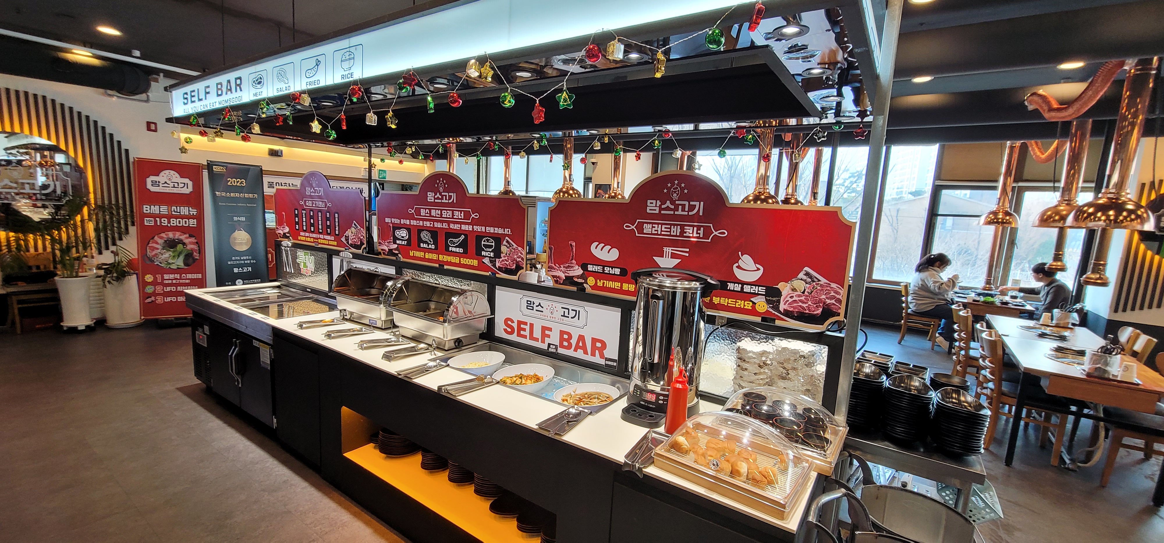 듀홈마고기가 넘 땡겨서 오게 된 맘스고기 ㅎㅎ 이미 호평동에선 유명한 곳이었는데 뒤늦게 왔어요 ㅎ 키즈룸 있어서 고기 익을동안 아이가 신나게 놀기 좋았어요 ㅎㅎ 고기도 무한리필집 느낌 아니고 진짜 맛집 느낌으로 잡내 1도 없이 맛있었습니다ㅠㅠ 특히 냉삼하고 삼겹살ㅠ 찐 갬덩..♡ 사장님 너무 친절하시구 불판도 잘 봐주시고 넘 좋았어요 ㅎㅎ 자주 올게요!!!