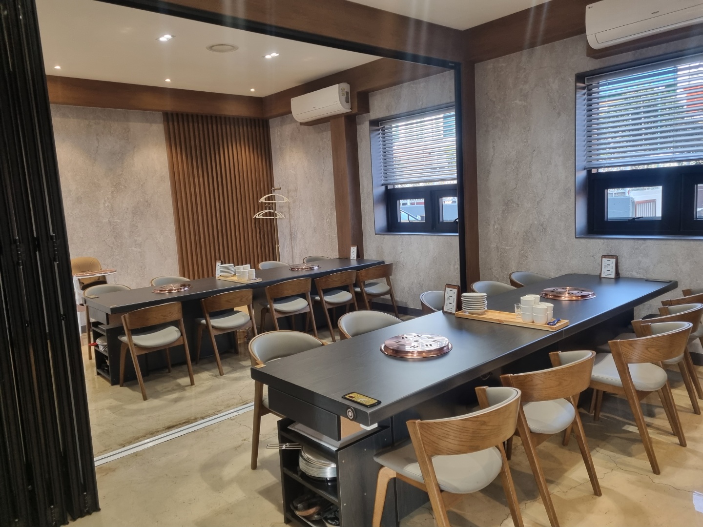문더콜리고기는 넘버나인 최상급 좋아요. 고기를 구워먹는 시스템! 고기 잘 굽는 사람이랑 가세요. 좋은 고기 맛있게 먹는 방법은 잘 구워야함. 특히 숯불이라 더 신경써서 구워야하니 고기 굽는게 서툴다면 비추합니다. 차라리 점심 식사로 가세요! 식당은 조금 아쉽습니다. 방문하자마자 무응대 전화하느라 정신없고, 테이블 안내도 제대로 이루어지지 않음. 테이블 담당 서버가 없어 벨을 두번 눌러도 서로 나몰라라함. 밑반찬 정갈하고 다채롭게 나오며 샐프바있어 추가로 먹기 좋아요. 떡국 맛있어요! 떡국 주문하고 안심사러갔다왔는데 불빼버림; 당황하셨는지 어? 어?하며 사과없음. 냉면 주문한지 3분만에 나옴. 면이 풀어지지 않음; 가위로 잘라먹음. 그렇게 매장이 만석에 바쁘거나 그런것도 아닌데 다소 아쉬움.
