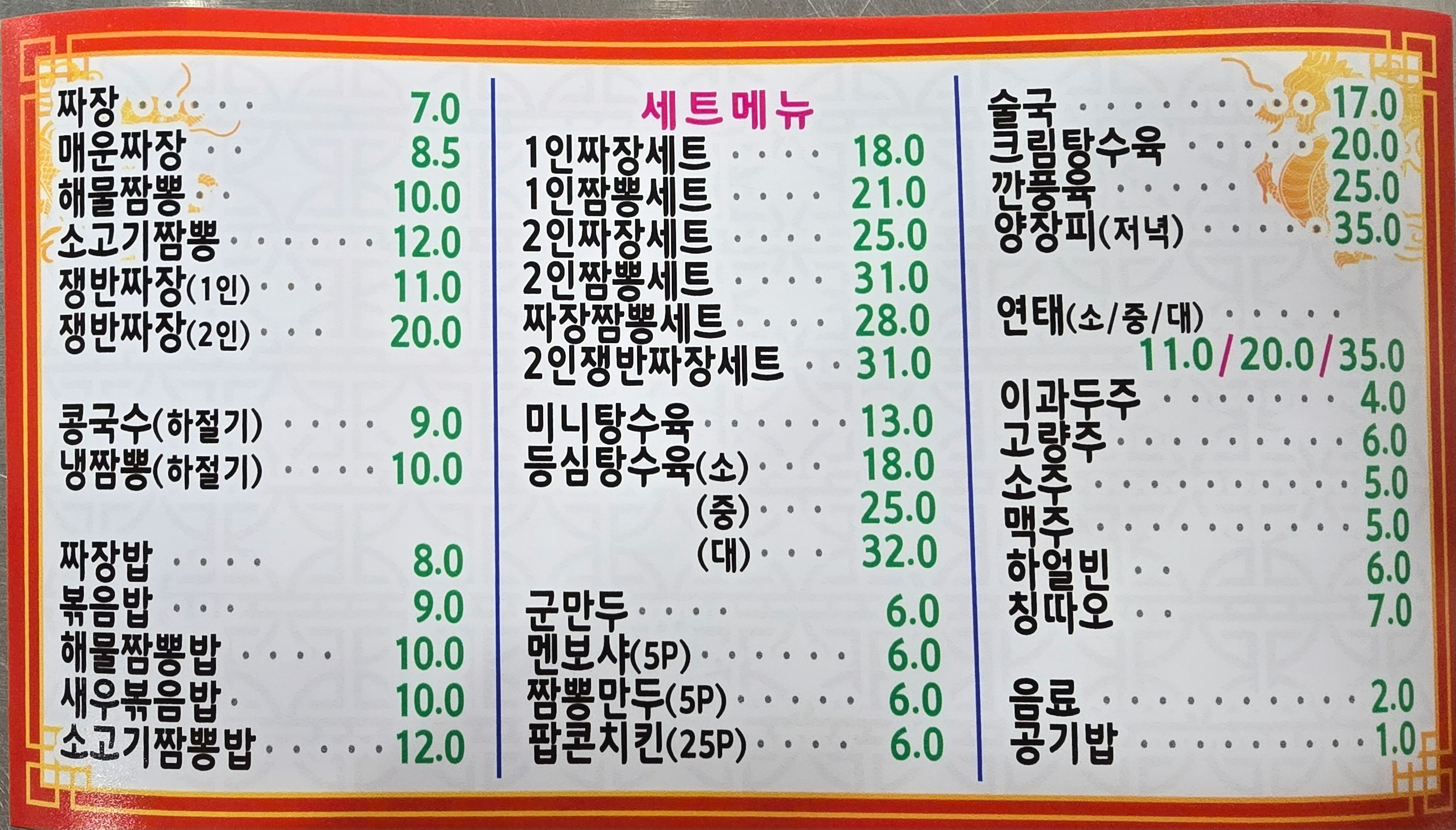 - 정성가득 짜장면 7,000원