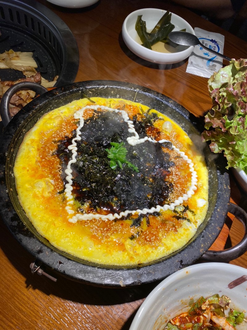 ㄱ찬솔몇 주 전에도 왔어서 6-7번은 온 광안리 고깃집 맛집 예약을 안 해서 오는 길에 캐치테이블로 웨이팅을 하였기도 했고 아무래도 불금의 밤이라 웨이팅 1시간 40분 하고 들어갔어요 ㅠ 여전히 직원 분들 너무 친절하시고 직접 맛있게 잘 구워주셔서 편하고 껍데기도 처음 먹어보는데 인절미가루에 찍어먹으면 쫄깃쫄깃하고 맛있어요 항상 너무 맛있게 잘 먹고 갑니다 같이 온 제 친구들도 여기는 진짜 맛있다고 매번 말할 정도에요 🙏🙏💕 해물 라면도 맛있고 된장찌개도 맛있고 서비스 냉면도 감사합니다