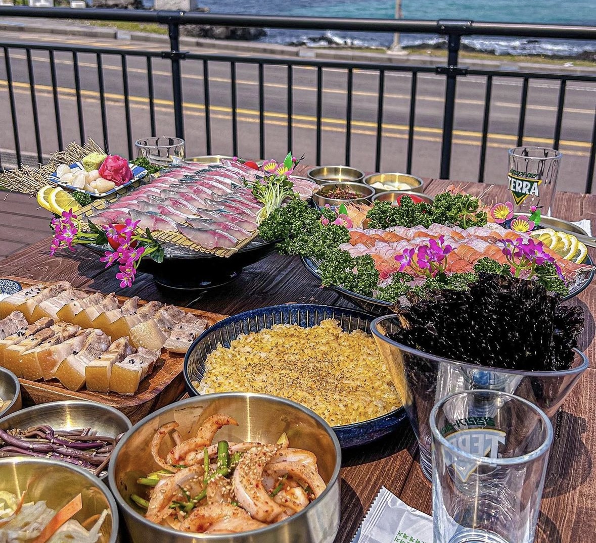 CHAE0모둠회먹었는데 고등어회가 젤 맛있네요 같이나오는 양념이 맛있고 구성이깔끔해서 좋아요 가격도 괜찮고 모둠회에 다른회는 맛있는 편은 아니고 고등회가 젤맛난거 같아요 이러니저러니 바로앞에가 바다라서 경치가좋고 여름에 밖에서앉으면 더 좋을듯 <<깔끔 적당히잘나옴 가격좋음 >> 양념회무침이나 배추들어간지리 맛남 노을질때오세요