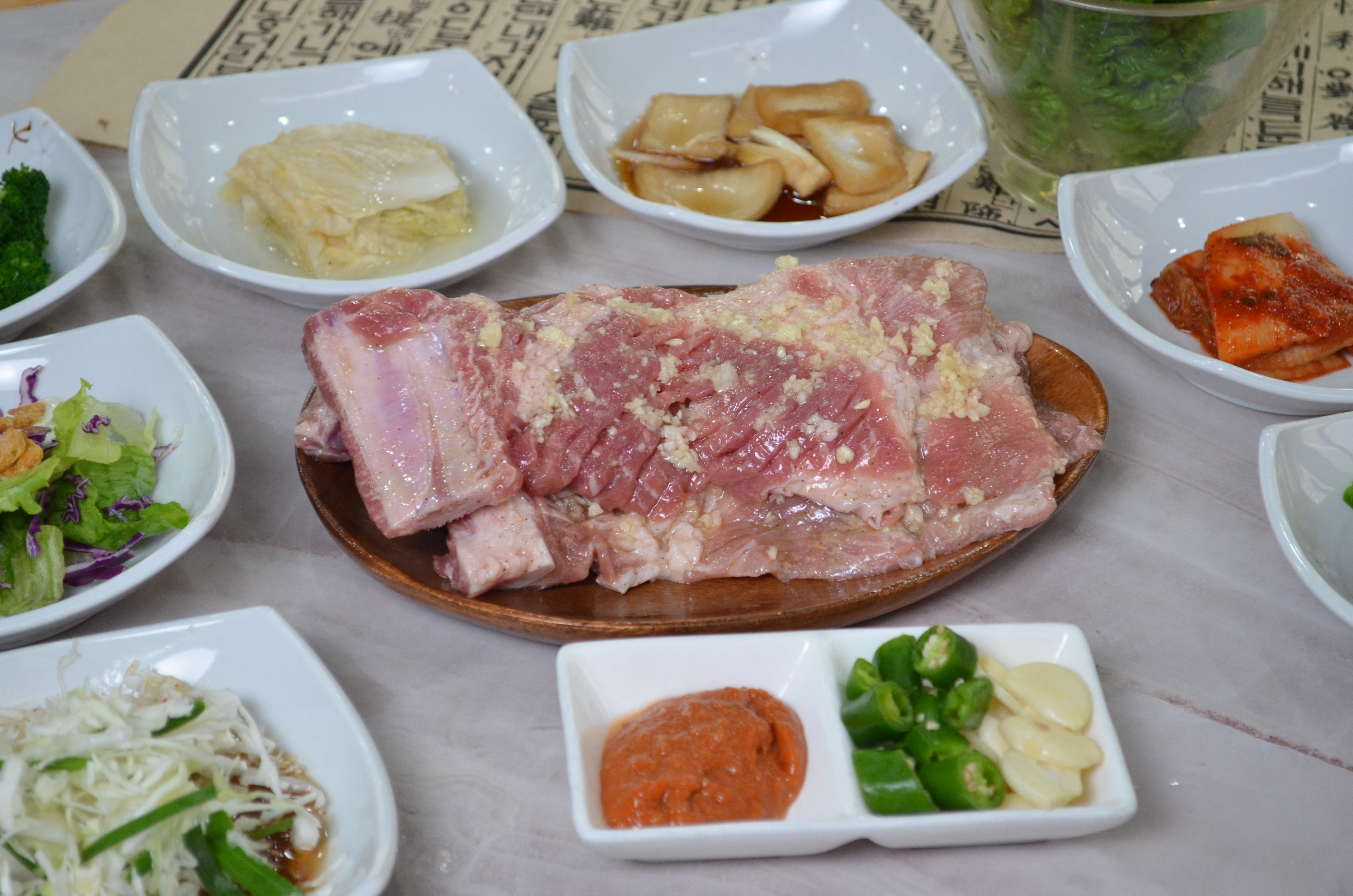 마이쮸이<<저희 7시에 방문한다고 연락드리고 빨리간 손님입니다>> 추석연휴를 맞이하여 가족과 방문했는데, 직원분이 고기를 직접 구워주셔서 편하게 식사할 수 있었어요. 양념갈비 2인분 + 마늘갈비 2인분 시켰는데도 화덕피자 서비스 주셔서 감동 🍕✨ 반찬으로 나온 토마토+유자 드레싱이 상큼하고 너무 맛있어서, 추가로 주문(8조각 3,000원)까지 했네요 😋 근데 리뷰적으려고 영수증을 뒤늦게 확인하니 주문서에 안올리샸더라구요..잘먹었습니다 하하 고기도 부드럽고 양념 간도 딱 좋았어요. 후식으로 나온 곤드레나물밥도 고소하고 담백해서 마무리로 완벽했습니다. 👉 방문하시는 분들은 곤드레나물밥 꼭 시켜 드셔보세요! 강력 추천합니다 💯
