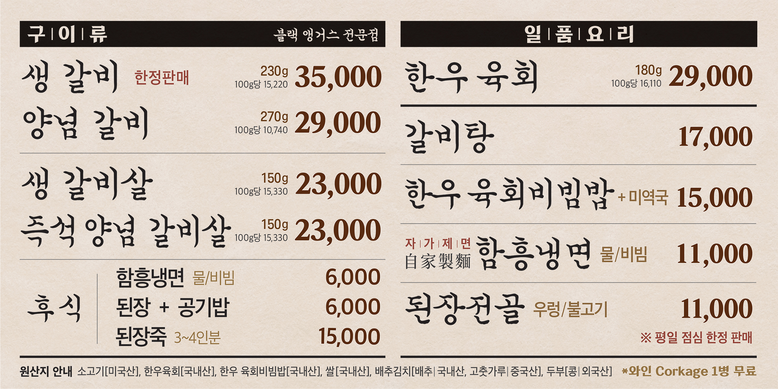 - 생갈비 35,000원