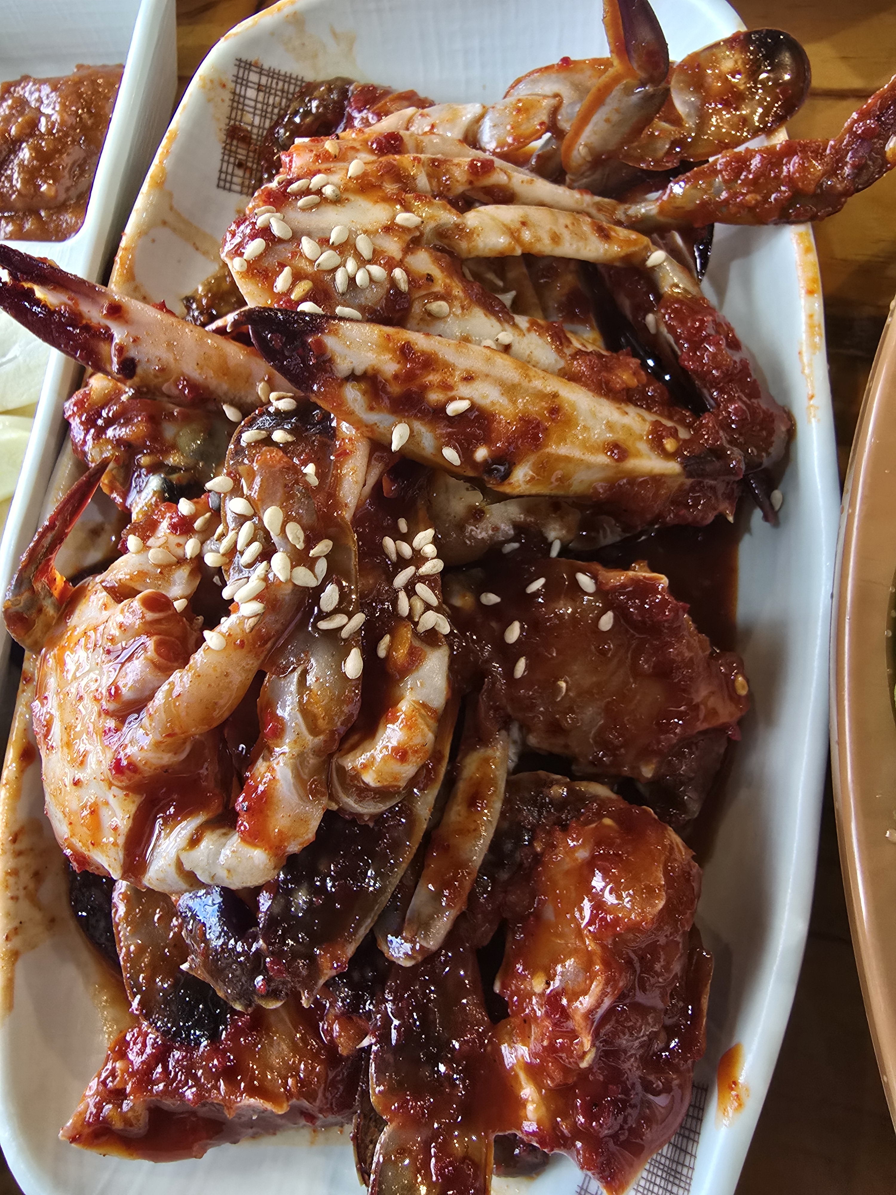 민궁돌이제주 갈때마다 생각나는 곳입니다. 화순이 본점인데 대정점도 깔끔하고 넓어서 좋네요. 반찬 다 맛나고 튀긴 돔베고기가 꼬수워요. ^^ 게장도 맛나서 저 양념에 고기 찍어먹어도 맛납니다. 미역국도 맛나서 혼자 싹 비우고 왔네요. 첨에 갔을땐 안 보였던 게가 있어서 찍어봤네요. 게껍질을 버리는 그릇(?)을 지고 있는게 안쓰럽네요. ^^