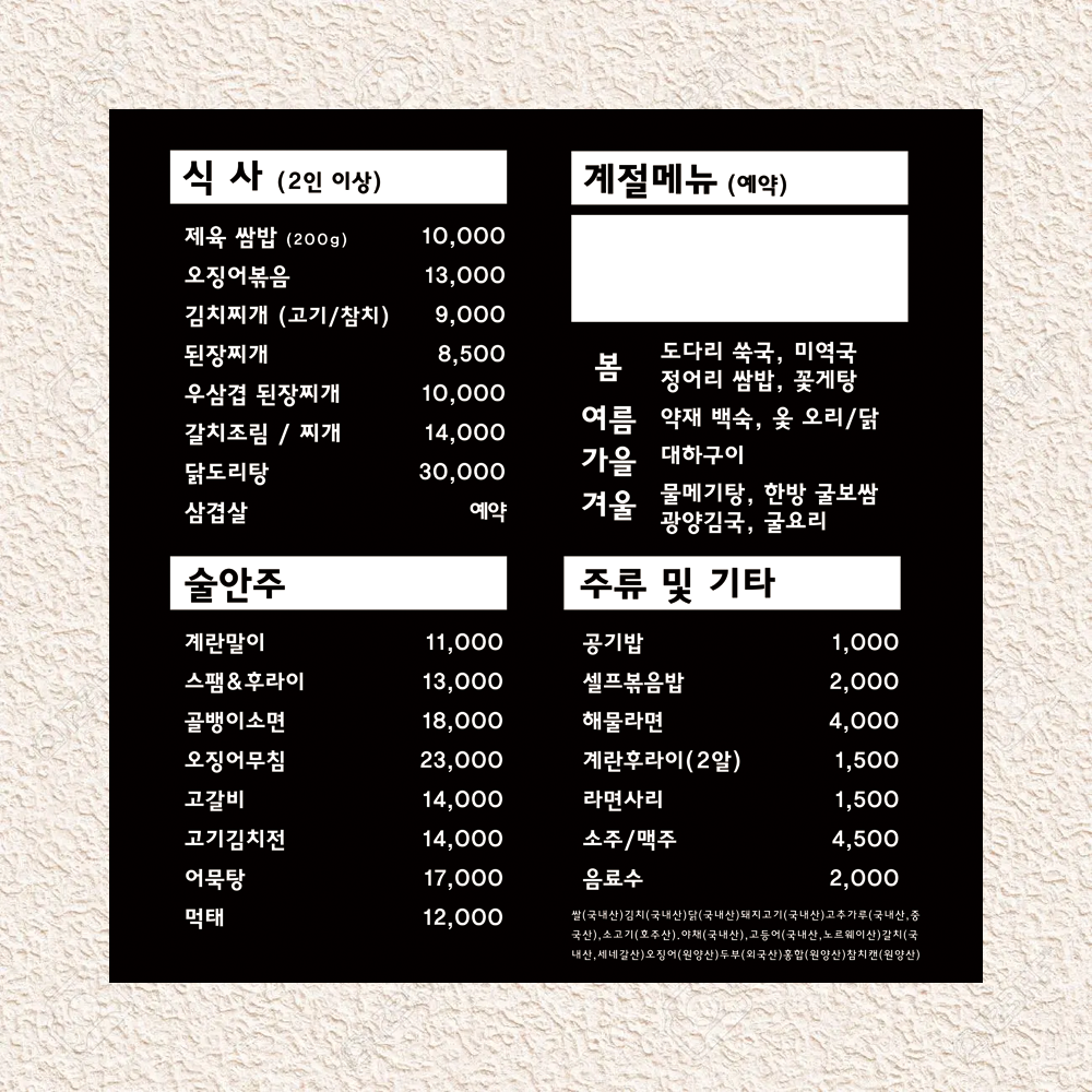 - 식사메뉴