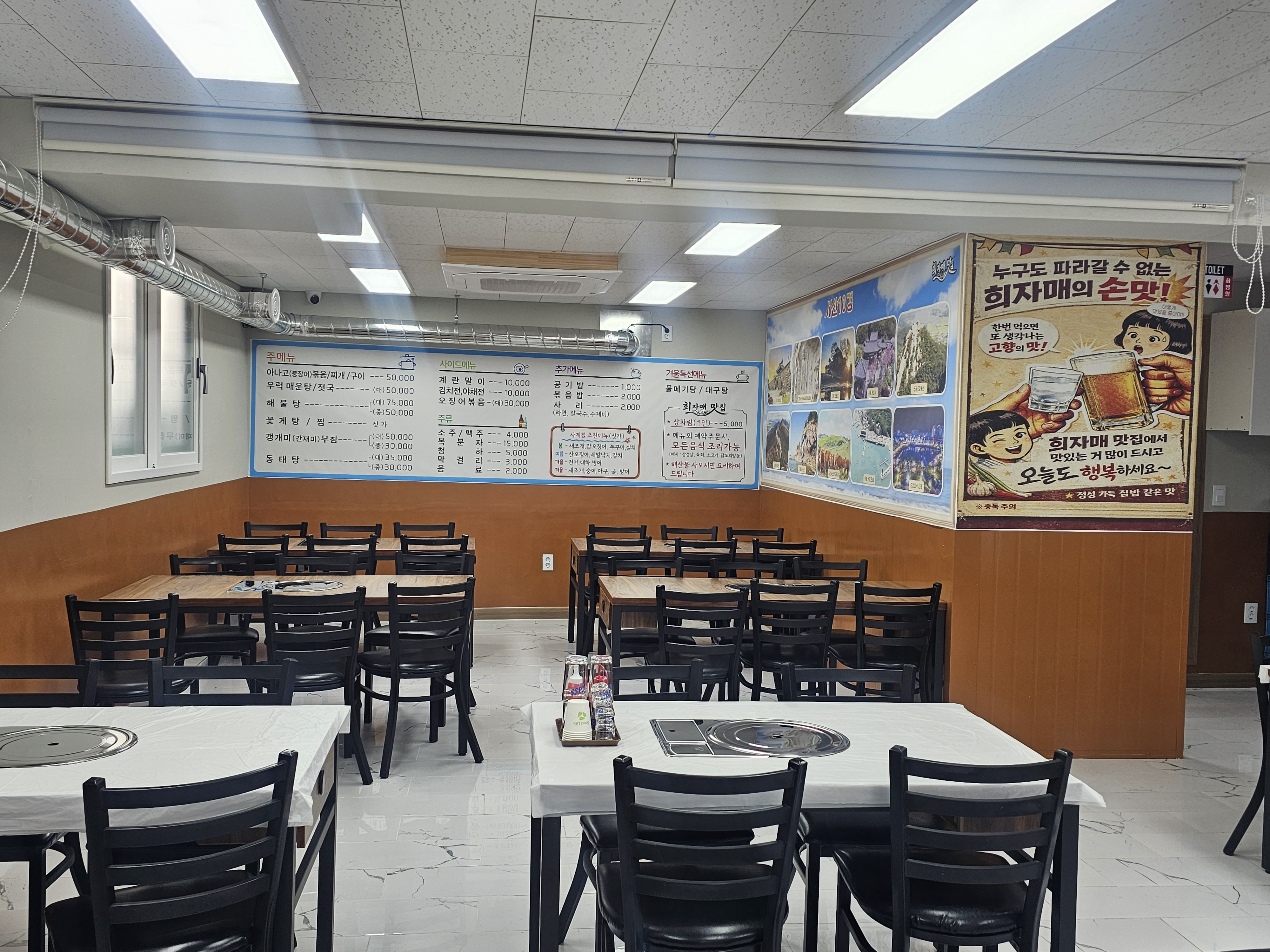 유롤리시장갔다가 지나가는길에 동부시장 새마을금고 옆에 밝은 간판이 있어 봤는데 음식점이 생겼네요!!! 새로생긴곳인가 싶어서 들어가서 동태탕 시켜서 먹었는데... 인생 동태탕을 찾은거같아요!!!!😝 가게 분위기는 단체회식, 동호회, 계모임 하기 정말 좋은 장소인거같았어요👍 사장님께 미리 예약주문전화해서 이거저거 먹고싶은 음식 얘기해주면 먹고싶은 음식 전부 다 준비해주신답니다!!!ㅎㅎ 희자매맛집 적극추천합니다😍🫰