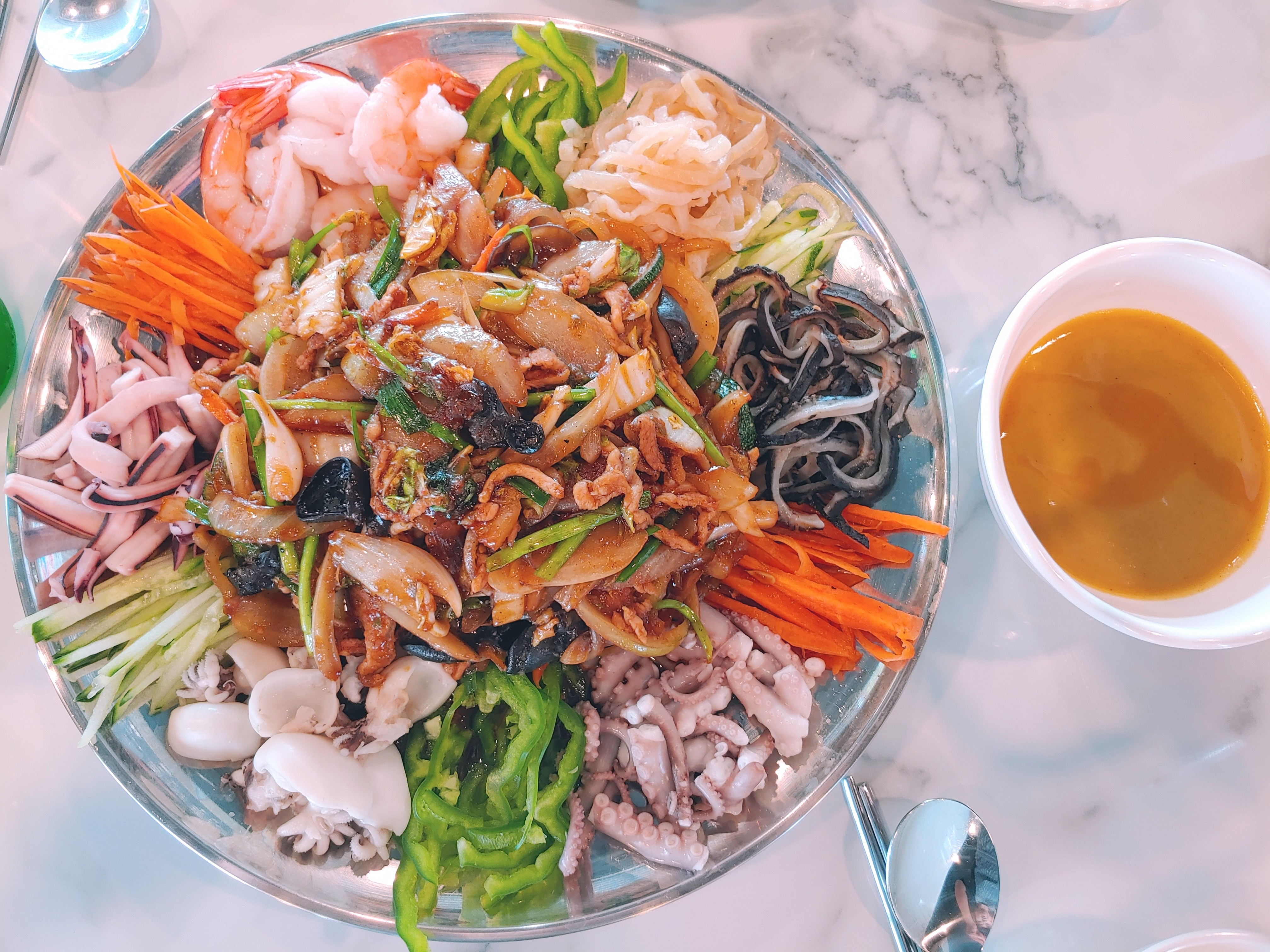 redstar78아들추천맛집! 중화비빔밥, 돼지짬뽕, 탕수육중자 주문 중화비빔밥엔 불향이 진해 맛있었고 돼지 짬뽕은 면 보다 밥과 궁합이 더좋은것 같아요. 밥 말아 이것도 순삭!! 탕수육에 쏘스가 저한테는 좀 달다고 생각ㅇ드는데도 뭔가 깔끔해서 자꾸 손이 가서 다 먹어버렸네요 ㅋ 진작 알았으면 하는 아쉬움 ㅋ ㅋ 밥도 공짜고 배부르게 잘먹었어요.