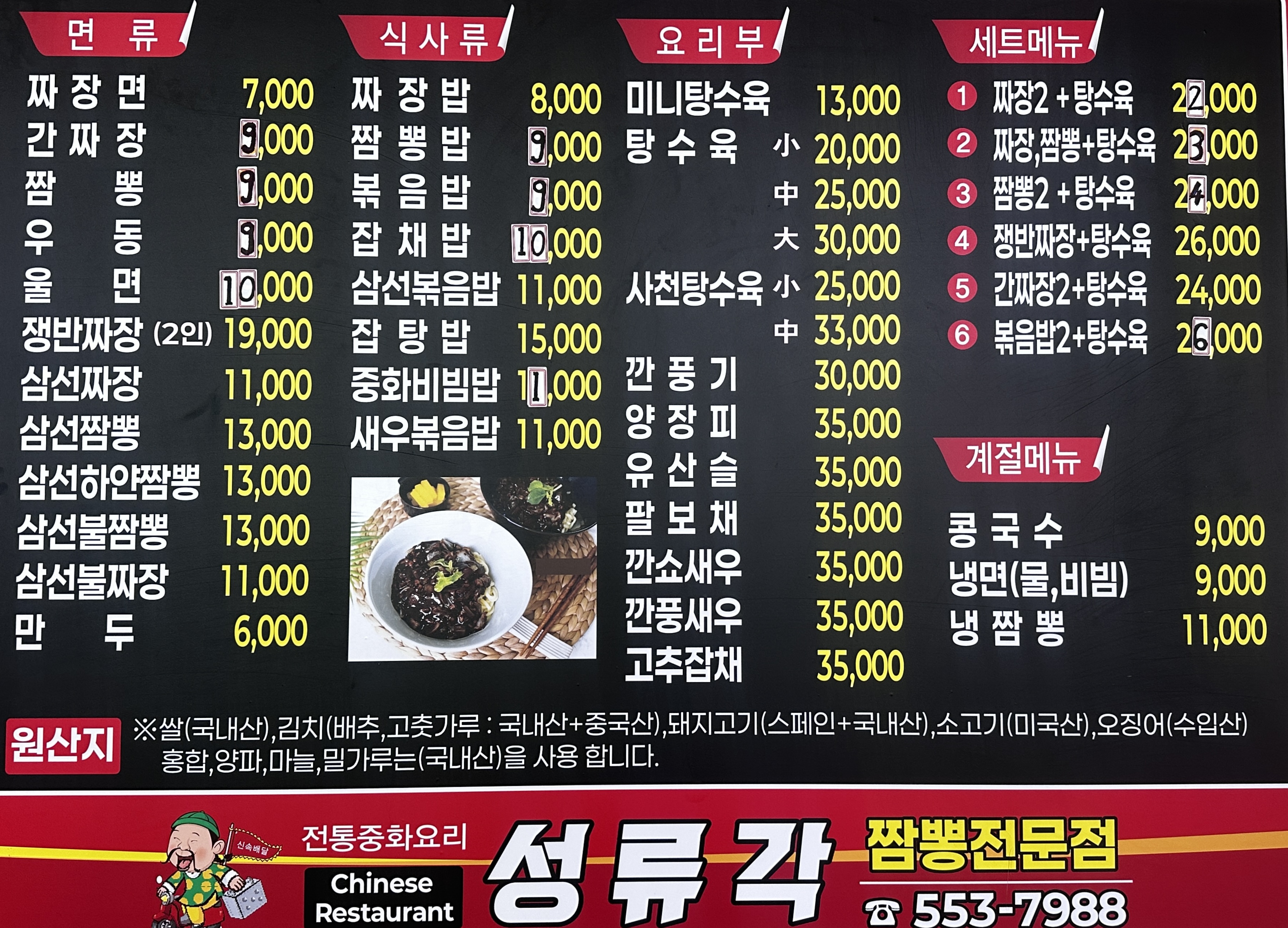 - 짬뽕 9,000원