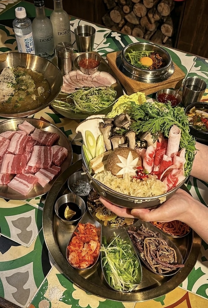 네네90팔계집이라 고깃집인줄 알았는데 솥밥을하는 한식집이었어요 저희는 야장러버라 야장에선 고기가 진리에요 그래서 냉삼 시켜서 먹었는데 넘 맛있더라구요 이런 봄날에는 이런곳이 딱입니다 골목에 있어서 분위기도 조용하고요 안에 들어가니까 레스토랑처럼 고급분위기 데이트하기 딱이었어요 굿♡♡♡♡
