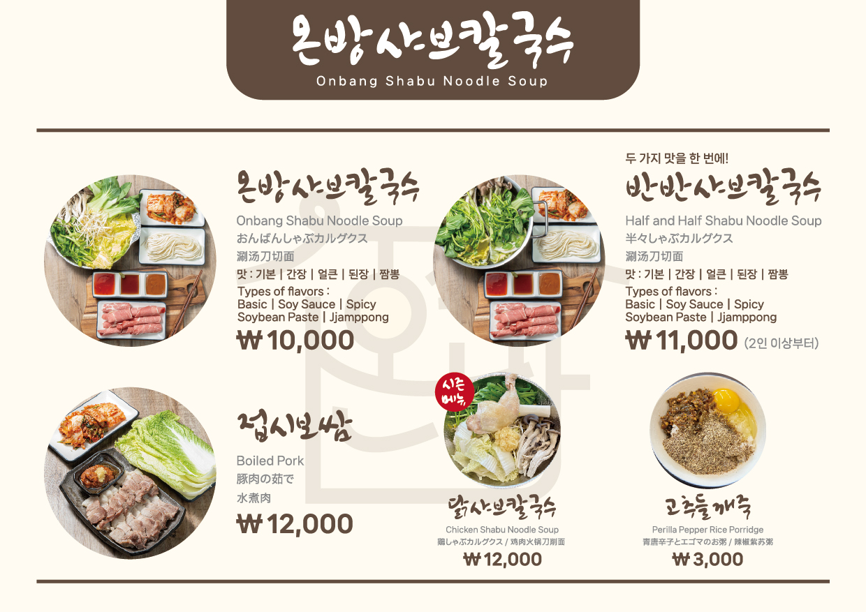 - 온방샤브칼국수(1인) 10,000원