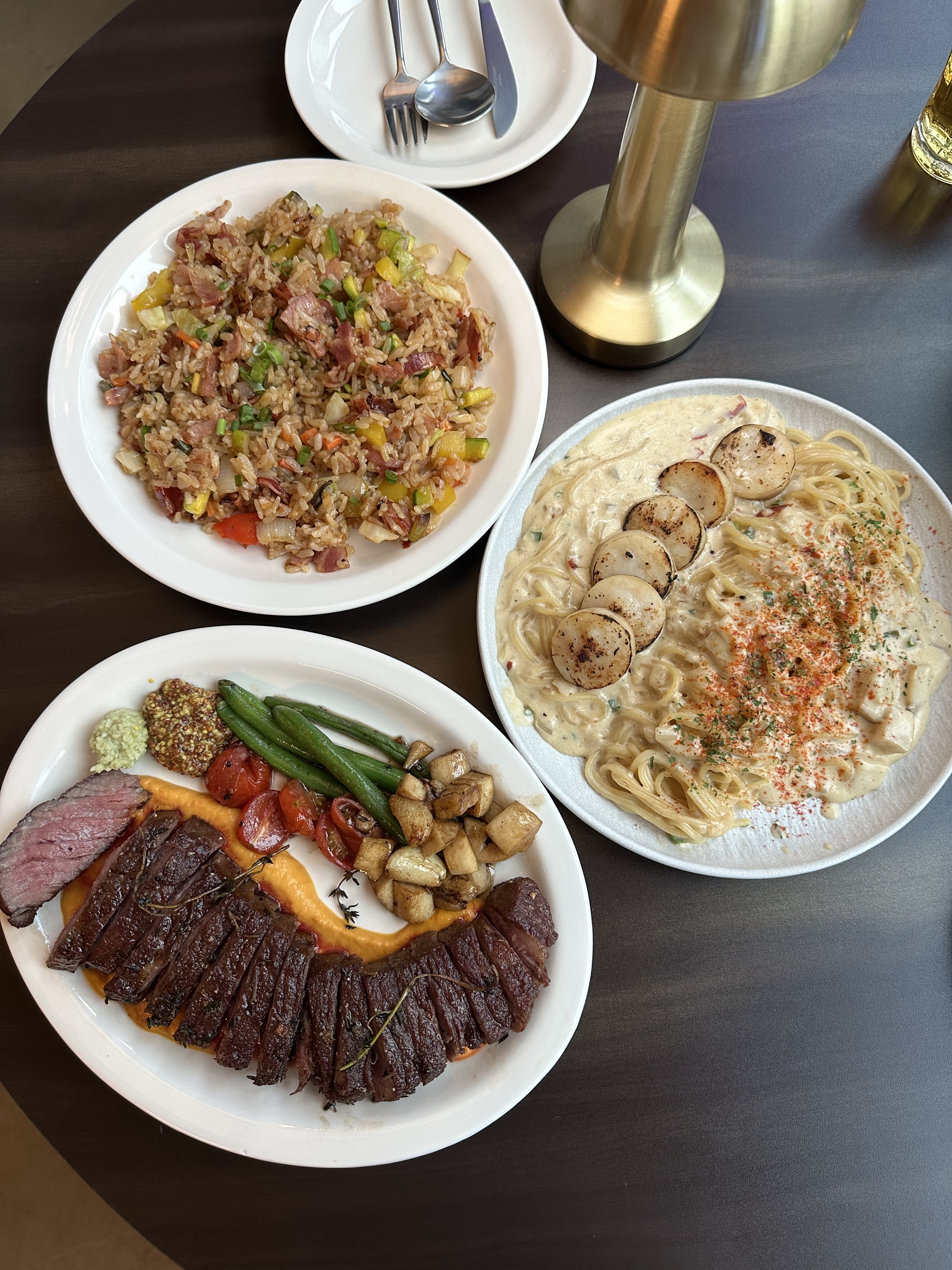 불꽃꼬미파스타 감칠맛 끝장나게 맛있어요! 쌈장 글레이즈 삼겹살은 👍 👍 역시 한국인들이 좋아할 맛 간 조절부터 감칠맛을 잘 내셔서 음식 다 맛있어요! 고구마프라이즈 꼭 드셔보세요! 맥주 안주로 아주 좋아요♡ 디저트로도 굿 비스크 먹물파스타 묵직하면서 강추 카니미소 오일 파스타는 게장맛 좋아하시면 강추! 모든 메뉴 다 맛있어서 뭘 시켜도 만족 할 맛집 디저트도 굿굿굿 데이트 장속로 딱!
