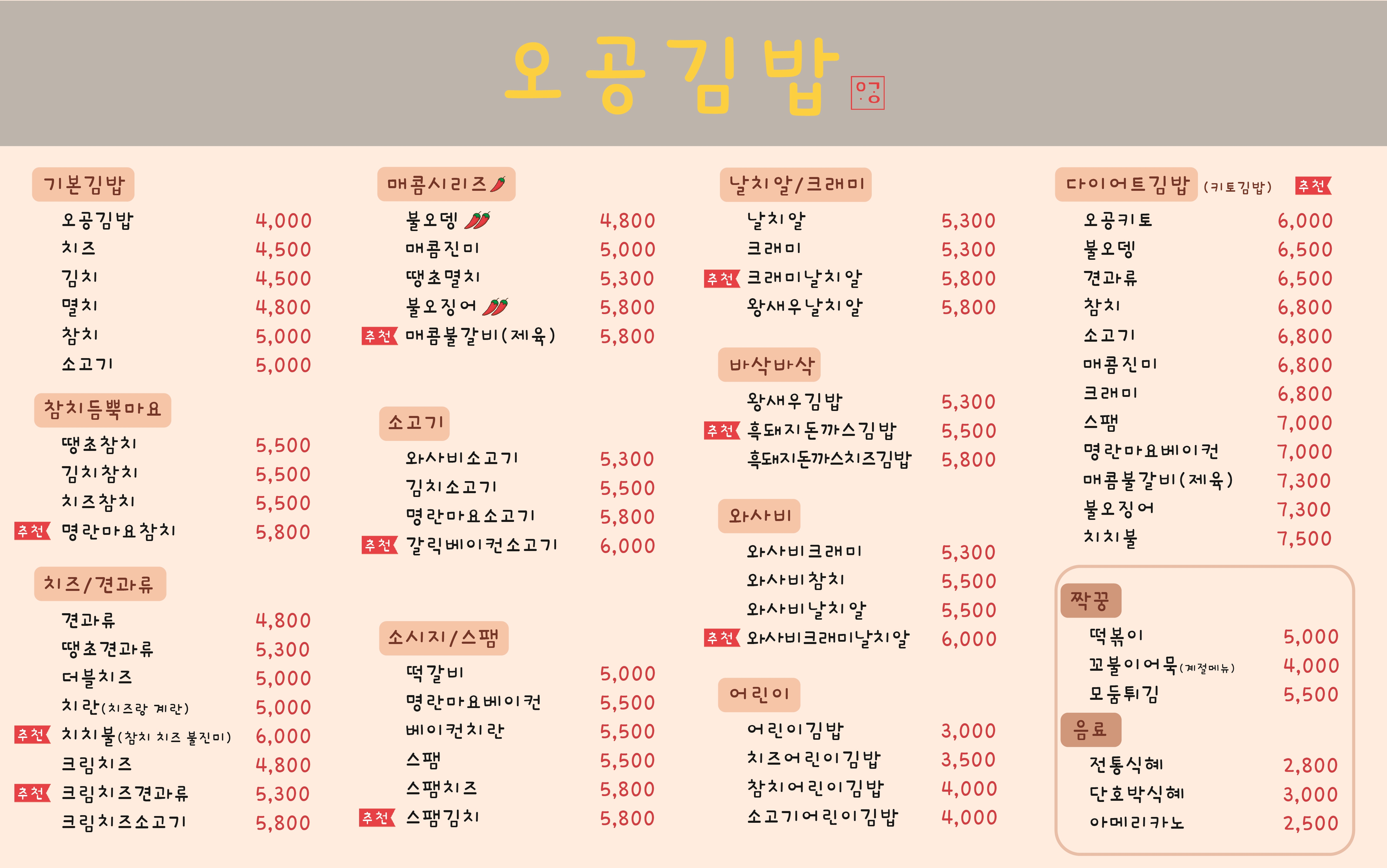 - 오공김밥 4,000원