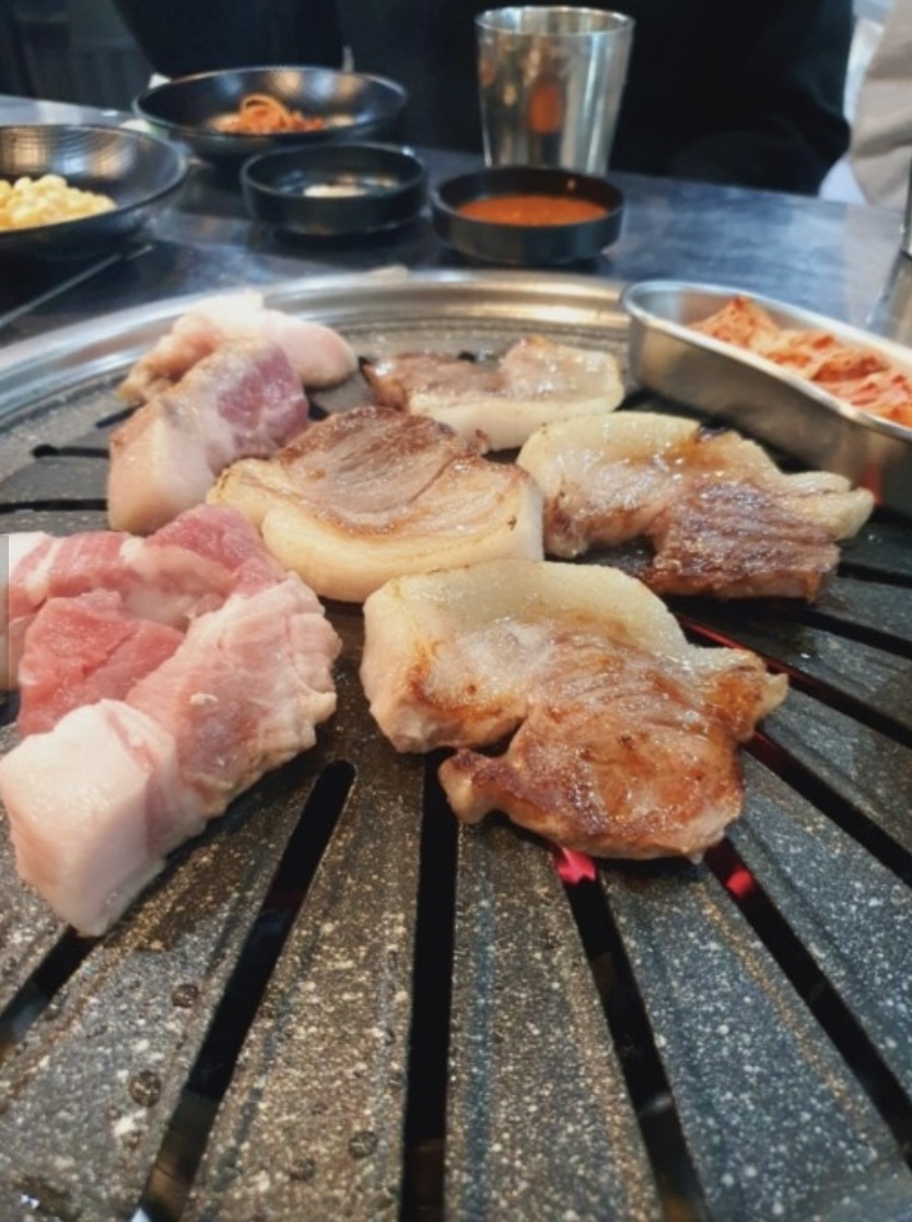 내사랑소쥬노량진 맛집으로 유명한 솔찬제주뒷고기는 매장이 넓어 단체모임에 좋아요. 신선한 뒷고기를 불판에 올려주니 크~너무 먹음직스럽더라구요😍😍 노릇노릇 잘 익은 뒷고기는 엄청 쫄깃하고 부드러위요😋😋 특제 나물에 돌돌말아먹고 쫄면과 같이 먹으니 새콤하니 더욱 꿀맛🔥🔥