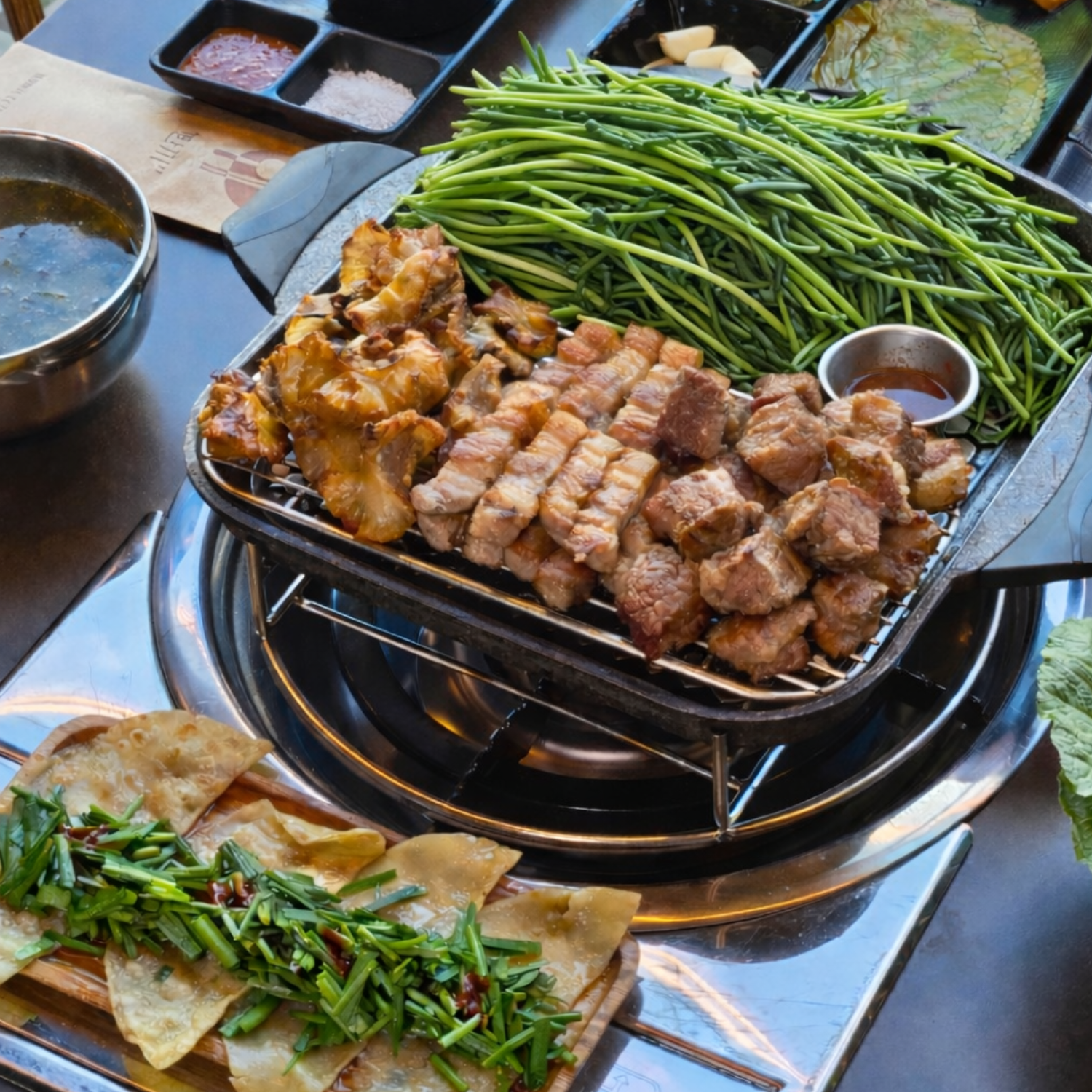 맛있게먹었다새벽 두시까지 하는 고깃집이 요즘 잘 없는데~ 늦게까지 하구 직접 구워주셔서 술집처럼 방문하기 좋네요! 분위기도 조용차분한 느낌이라 데이트하기 짱👍🏻 목살 삼겹상 맛있었고 특히 멜젓? 이 진짜 맛있어서 생각나요 사장님... 멜젓 어캐 한거에요 넘 맛있었어요!!!!