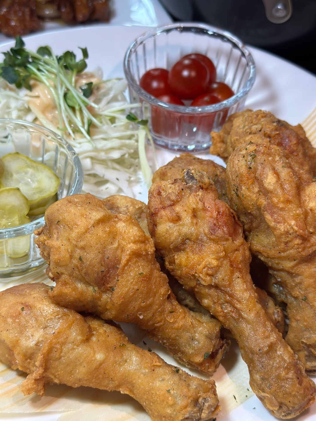 개깡의 물약골뱅이소면이랑 치킨이 먹고 싶어서 왔는데 새콤달콤 양념 진짜 맛있고 따뜻한 호박튀김까지 good~ 치킨도 훌륭합니다. 분위기도 좋고 인테리어도 송도만의 특색이 잘 드러나 예쁩니다.