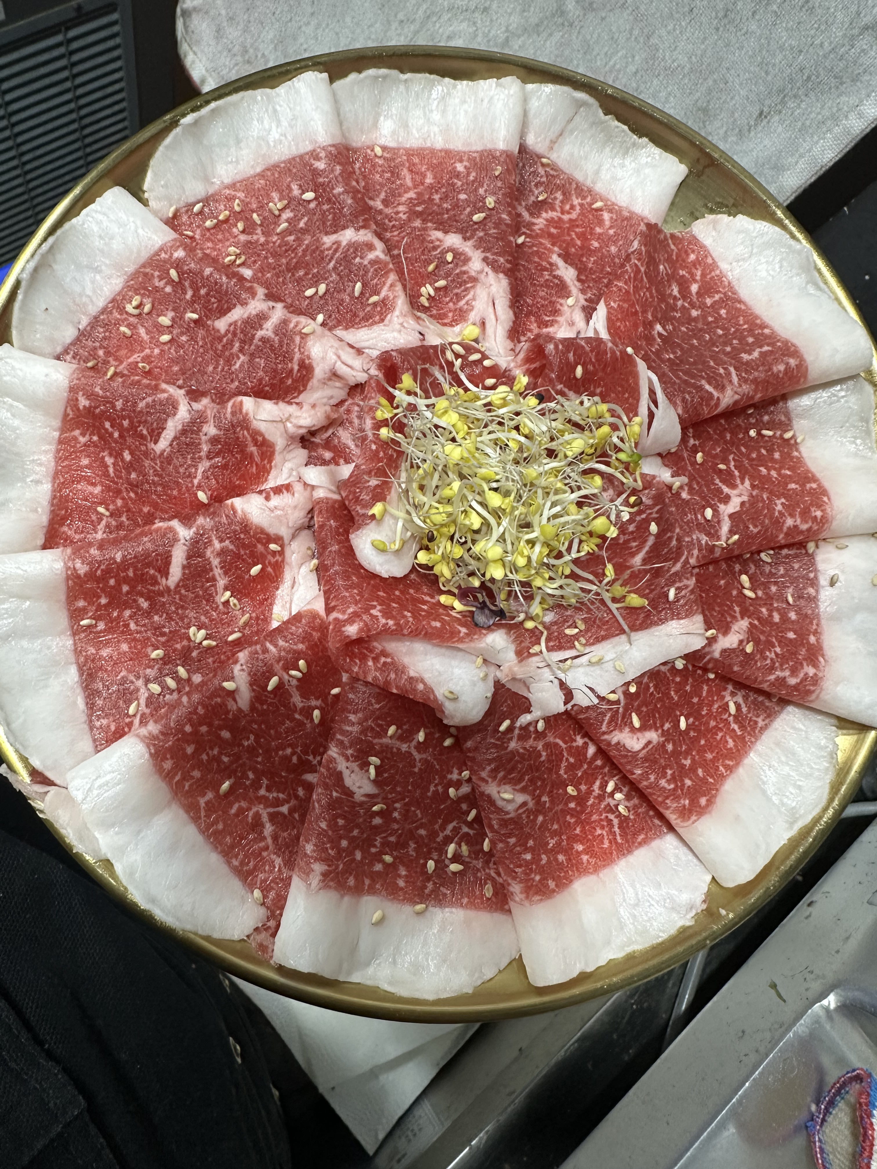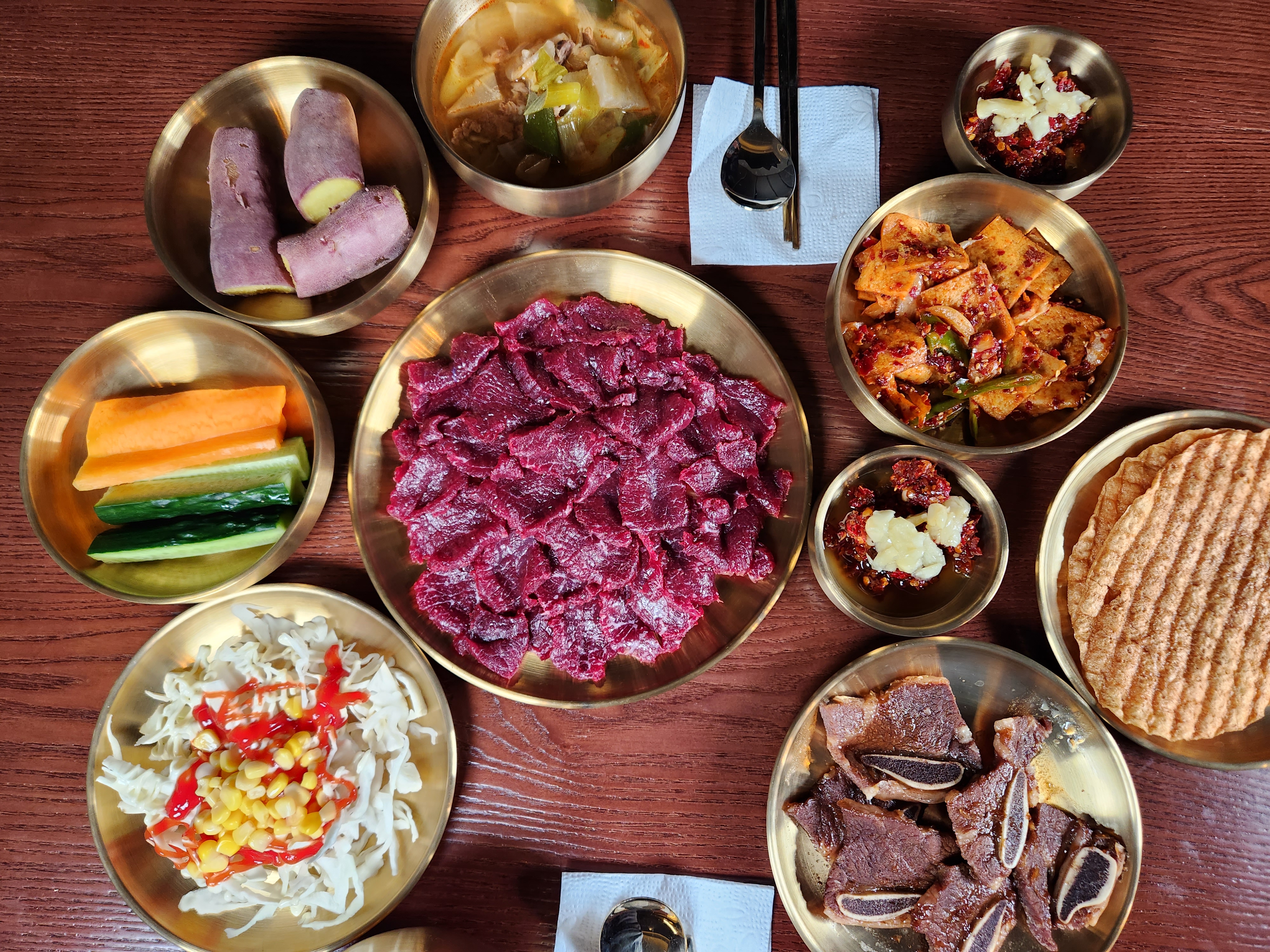 대구나라고성생고기 고성동 육회맛집 육회에 노른자 탁 올라간 양념장이 킥이에요 양념장 간이 너무 잘맞아요 여태 먹어본 육회중에 제일 맛있네요 같이 시킨 차돌사시미는 육회보단 살짝 아쉽지만 이것도 역시 양념이 진짜 맛있어요 기본 반찬으로 나온 육개장은 전문점보다 더 맛있네요👍 다들 육회 맛보러 꼭 오세요