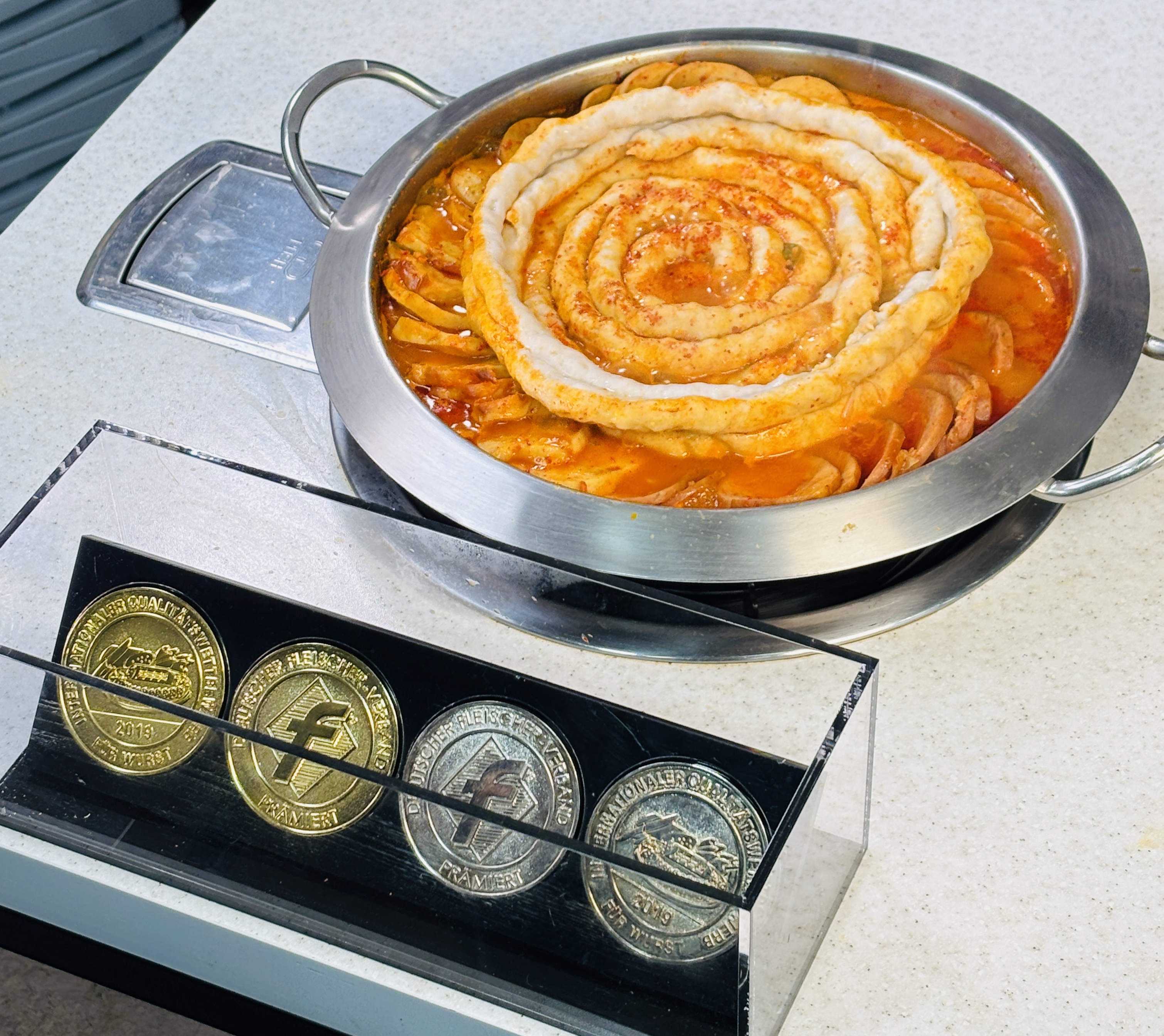 철인뼈다귀20260226 대전 지족동에 흑백요리사2에 출연한 사장님이 운영하는 맛있는 부대찌개집이 있다는 소문을 듣고 찾아왔습니다. 입구에 이 곳의 시그니처 발칸포생햄 발사해 주는 주사기 모양의 장비가 걸려 있습니다. 식당 근처는 주택가와 식당들이라 주차하기가 쉽지 않지만, 식당 골목 끝에 있는 동아쇼핑건물에 주차할 수 있다고 안내되어 있습니다. 식당 밖에서 보면, 이곳이 맛집이구나 싶은 내용들이 많이 보입니다. 줄 서서 먹는 식당이라, 일부러 오후 1시 넘어서 왔고, 다행히 앉을 수 있는 자리가 있었습니다. 방송이나 유튜브에서는 웨이팅이 심해서 먹기 힘들다고 하네요. 발칸포 2인세트 주문했습니다 이곳의 풀셋 느낌의 부대찌개입니다. 소시지 판매도 하고, 나중에 주사위 돌려서 음식값 차후에 할인하는 쿠폰도 받을 수 있습니다. 햄, 소시지에 대한 자부심이 대단하다 싶네요. 사장님이 독일에서 12년 동안 공부하고 햄 만드는 기술 배워서 상도 받았고, 다양한 이력들을 식당 안에서 볼 수 있습니다. 냉장고에 발칸포생햄 발사장치가 들어 있어서 주문한 테이블에 사장님이 직접 가져와서 생햄을 발사해 줍니다. 대전에는 전국적인 체인의 본점이 많은 것 같습니다. 여기도 본점이네요. 웰컴소시지입니다. 어릴 때 보던 소지지부침인데 소시지가 독일햄. 맛있는 햄이라 그런지 깊은 맛이 있네요. 슈니첼 딸기잼을 뿌린 돈가스 같은데, 훨씬 부드럽고 고소합니다. 발칸포생햄부대찌개 주문한 테이블에만 식전 메뉴로 나옵니다. 팔팔 끓기 시작하면 모래시계를 뒤집고 5분이 지난 후에 식사가 가능합니다. 처음에 나왔을 때는 두부, 햄, 치즈가 들어있는 일반적인 부대찌개로 나와서 이대로 끓이고 있다가 사장님이 발칸포생햄발사장치로 즉석에서 생햄을 또아리로 만들어 줍니다. 사장님이 이런저런 설명도 해주고, 자부심 있는 자신감도 보여줍니다. 생햄까지 익으면 사장님이 가위로 잘라서 먹기 좋게 해 줍니다. 모든 테이블 돌아다니면서 직접 챙겨주는 것을 좋아한다는 느낌을 받을 수 있었습니다. 독일햄 소시지들도 맛있습니다. 국물이 칼칼해서 더 좋았습니다. 맛있는 소지지, 생햄 맛있는 재료들이 있는 부대찌개라 맛이 없을 수 없는 맛있는 부대찌개입니다. 식사 마치고 계산하고 나면, 주사위로 홀수가 나오면 10,000원 쿠폰을 주는데, 다음 식사 때 사용할 수 있습니다. 숫자 3 나와서 쿠폰 받아왔습니다. 나만 몰랐나? 싶은 많은 사람들이 많이 다녀간 흔적도 볼 수 있었습니다. 맛있는 음식 찾아 많이도 왔네요.