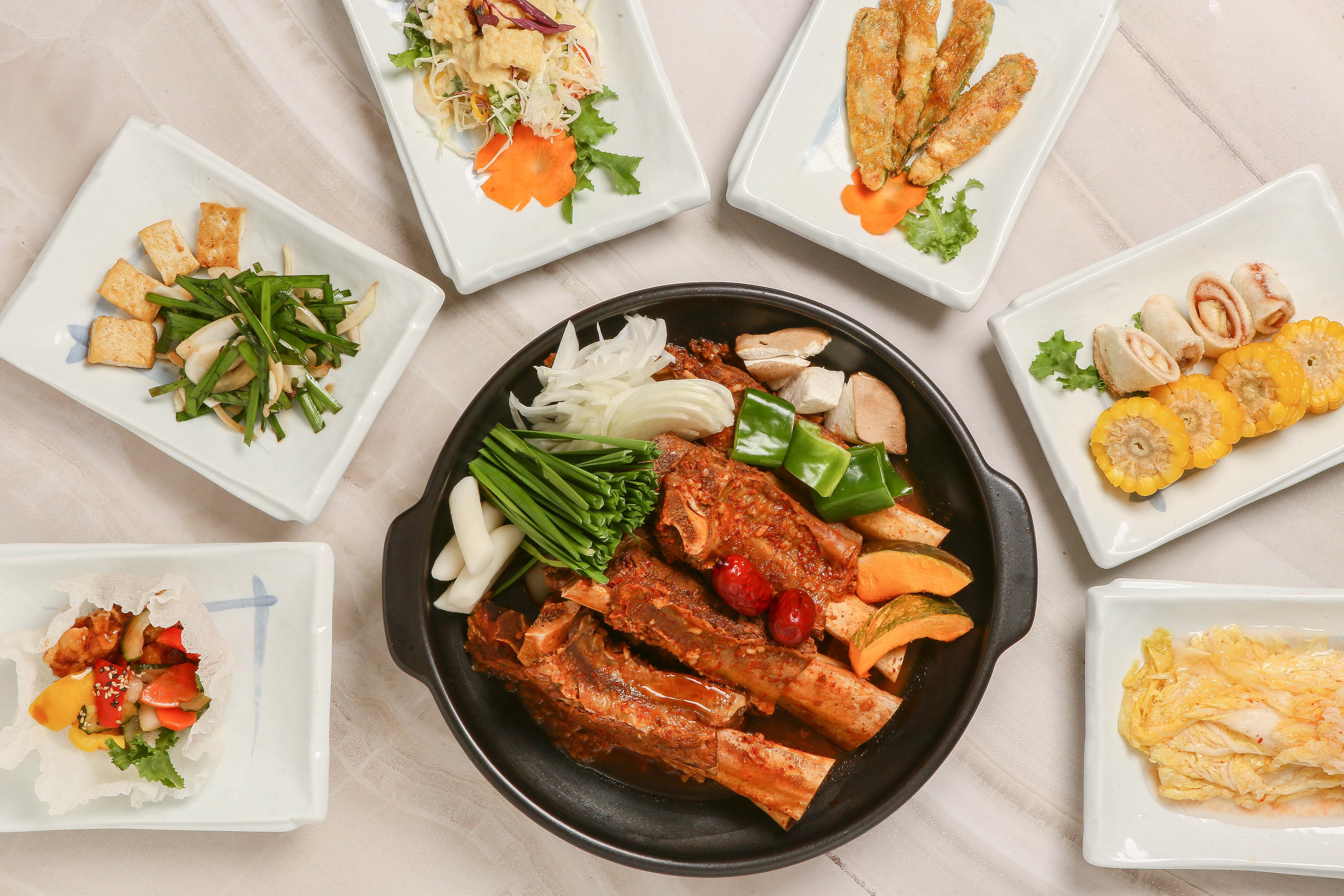 갱이4인가족의 외식메뉴를 선정할 땐.. 네명의 마음을 맞추기란 좀 힘든 법(ㅋㅋㅋ) 아이들에게 뭐먹고싶어~?하면 돈까스, 냉면, 국수 등 최애메뉴들이 나오고 엄빠는 고기도 구워먹고싶고 이렇더라고요.. 좀처럼 메뉴가 통일이 안된다 싶을때 모두를 만족시킬만한 다양한 메뉴가 있고 심지어 다 하나같이 맛있는 진해 자은동 맛집 '수제국수'로 향한답니다. 이미 진해 현지인분들은 다 아실만큼 유명한 진해 자은동 맛집인 수제국수인데요 위치는 맥도날드, 자은포스코 아파트 근처고 바로앞에 전용주차장이 넓게 있어서 주차걱정없이 방문하실 수 있는 곳이랍니다. 위치: 창원시 진해구 진해대로 975번길 7-7 영업시간: 매일11:00~21:00/ 20:30 라스트오더 그리고 여기는 유명인들이 다녀온 사인들! 스포츠선수부터 여러 방송인들이 다녀가셨네요 수제국수는 각종 TV 프로그램을 비롯해 여러 플랫폼들에 진해 자은동 맛집으로 나오면서 더욱 알려진 곳이기도하죠ㅎㅎ 안에는 넓은 홀이있고 좌석수가 많습니다! 가족외식이나 단체회식하기 좋은 큰 식당이죠 늘 올때마다 느끼는거지만 피크타임에는 손님들이 제법있는 편으로 그만큼 많이들 찾으시는 진해 자은동 맛집인것 같습니다 :) 가장자리 쪽에는 많은 인원들을 수용할수있는 프라이빗한 룸들도 인원별로 나누어져있어요. 저희는 가끔 모임있을 때 아이들 데리고오면 좀 조용한곳을 찾게되는데 그럴때도 딱! 그리고 단체모임하기에도 좋아보이고요 ㅎㅎ 방문 시 평일저녁이라 그런지 회식하시는분들도 많이 계셨네요. 그리고 아이들을 위한 놀이방까지 있어 유아를 동반하는 가족외식 장소로도 좋지요 이름은 수제국수지만, 국수를 포함해서 고기까지 다양한 메뉴가 있어 취향껏 고를수있어요 (물/비빔)국수와 냉면, 갈비탕, 돈까스, 삼겹살, 한우갈비, 소갈비찜 등등 여러가지메뉴가 정말 다양하답니다. 일단 제가 주문한 메뉴위주로 담아봤는데 저희는 갈비탕, 수제국수, 갈비찜 주문완료! 저희가 왜 좋아하는지 아시겠죠?! 메뉴 통일하기 어려울때 이렇게 다양한메뉴가 있는 진해 자은동 맛집에오면 모두가 만족 :) 거의 전메뉴 먹어보긴했는데 이집은 돈까스도 맛있고.. 국수도 맛있고.. 갈비찜도 사실 거의다 만족스러워서 자꾸오게 되는 듯! 주문을 한뒤 곧이어 밑반찬들이 나왔어요. 이날은 고기를 주문해서 밑반찬들이 좀 더 다양! 호박죽부터 샐러드, 튀김, 팥부꾸미, 메론 등 에피타이저부터 마무리로 먹을 디저트까지 정말 알차고 정갈하게 셋팅되더라고요 ㅎㅎㅎ 밑반찬부터 한상가득 채워진...