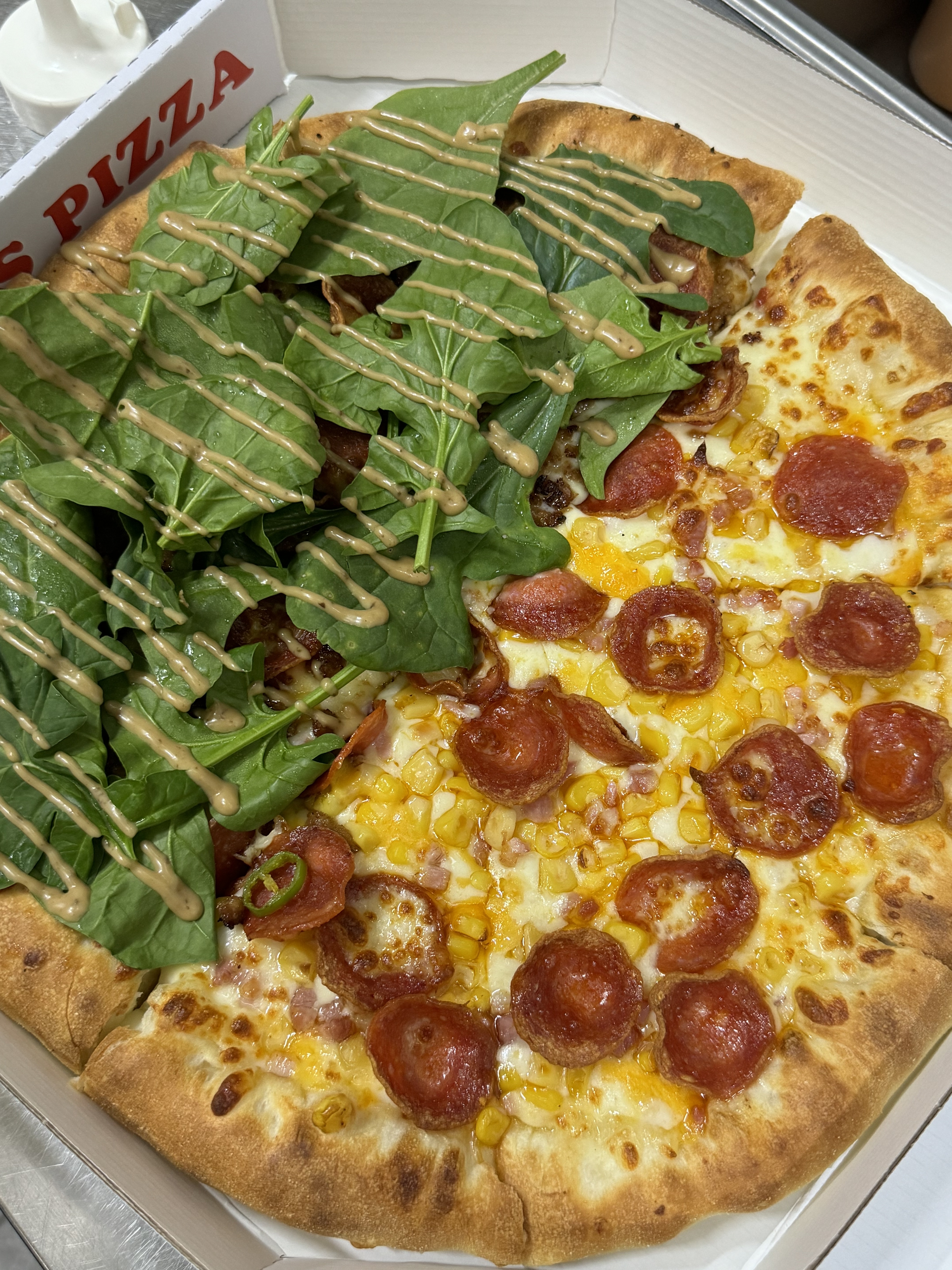 플라잉가브리엘오늘 남악 희스피자 다녀왔는데 완전 추천해요! 🍕 희스피자랑 버섯통통피자 반반으로 시켰는데 탁월한 선택이었어요. 특히 희스피자에 올라간 시금치가 루꼴라처럼 식감도 좋고 정말 맛있네요. 🌿 희스피자에 뿌려진 소스가 버섯피자랑도 너무 잘 어울려서 같이 곁들여 먹으니 꿀맛이었습니다 (소스 추가로 요청하세요 ㅎㅎ). 남악 피자 맛집으로 인정!