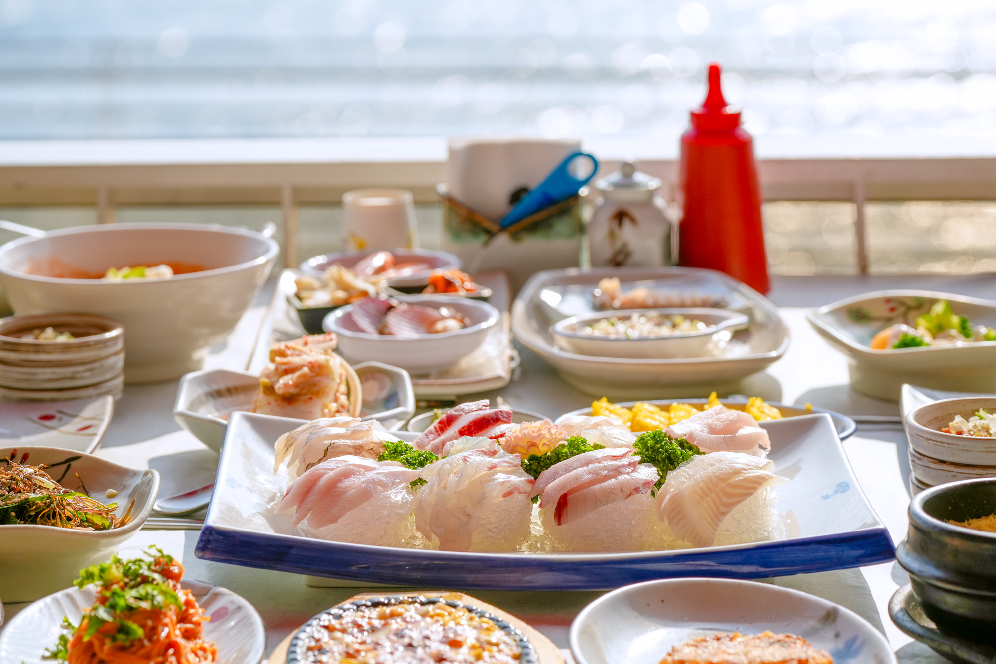 매장이 엄청 컸는데 대부분 다 룸 형식으로 되어 있어서 좋았어요. 룸 1개 빌려서 단체 모임 하셔도 좋을 것 같습니다. 뷰는 해운대 앞바다가 그야말로 파노라마 뷰로 보이는 뷰였고요. 앞에 주차장도 넓게 있어서 주차 걱정도 없어 좋습니다. 점심특선 회,해물, 튀김, 매운탕, 밥 이렇게 조금씩 나왔어요. 알차게 잘 먹었습니다.