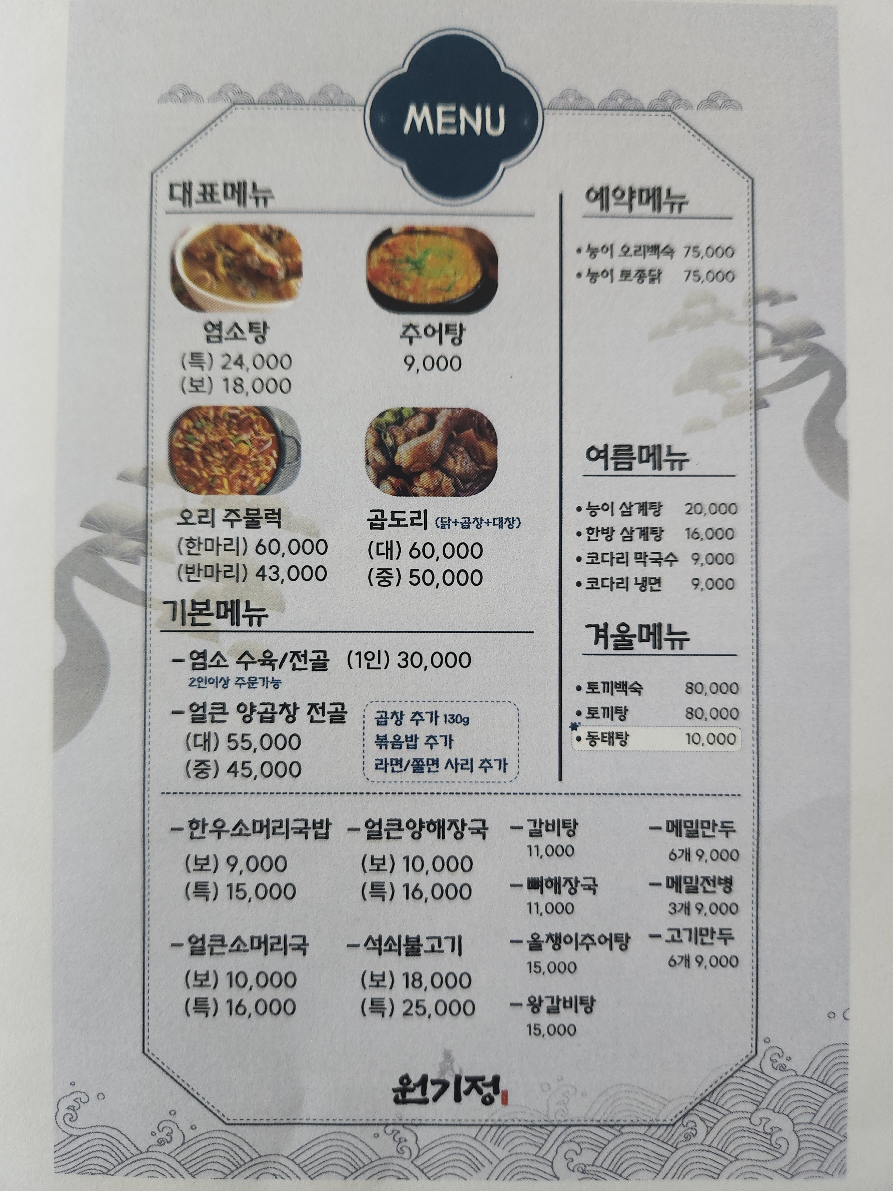 - 곱도리탕 60,000원