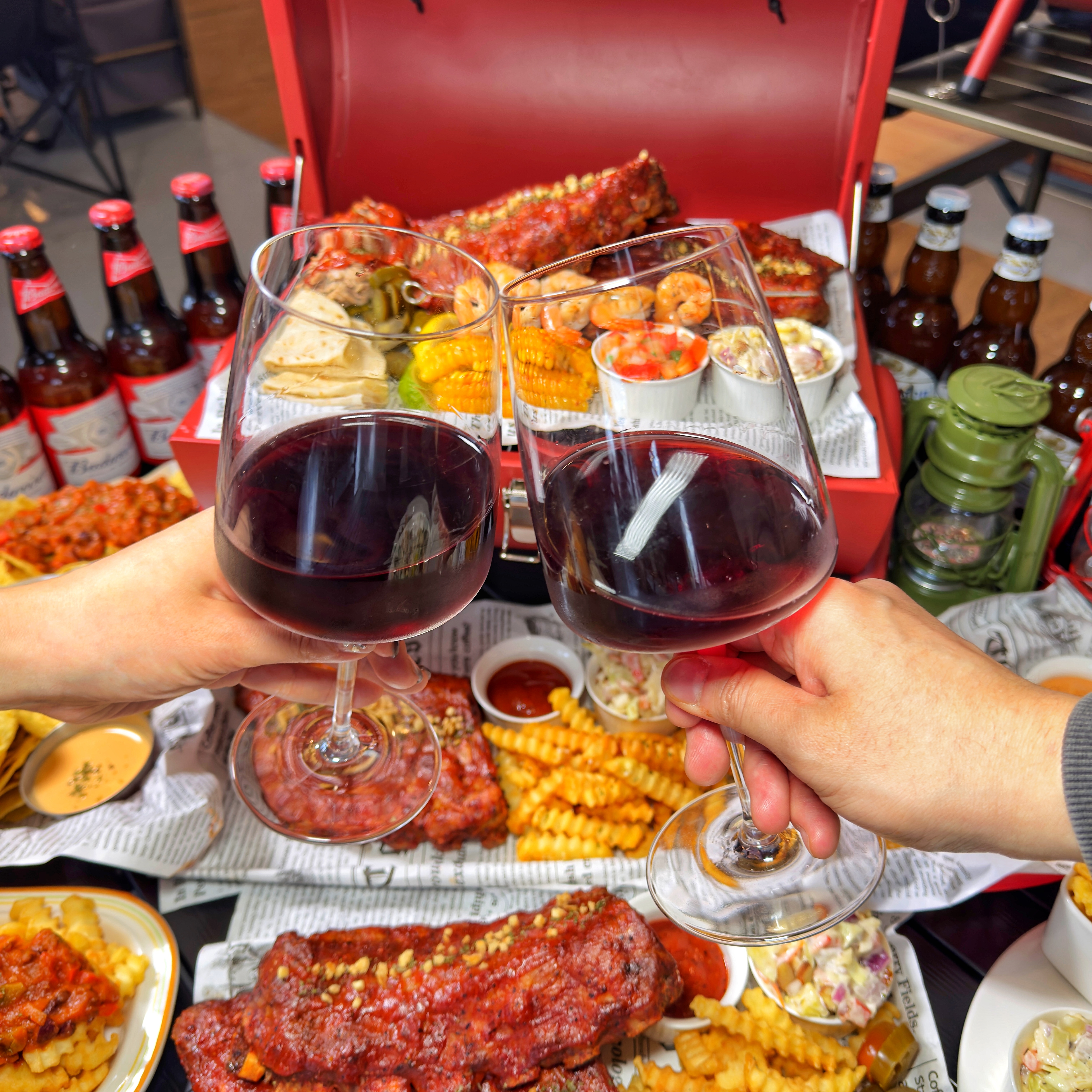 곰둥이 X 아빠곰안녕하세요 불친절한희준씨 입니다. 오늘은 청주 데이트 맛집으로 추천하는 캠핑펍글러브 다녀온 후기를 써볼게요 최근에도 청주 가족외식으로 다녀왔던 곳인데 이번에는 바베큐를 즐겨봤어요 최대한 솔직하고 자세히 리뷰해볼게요 문암생태공원에서 차로 3분 거리에 있는 청주 애견동반 식당 캠핑펍글러브입니다 최근 지인부부와 함께 텐트로 예약하고! 야외 바베큐도 즐겼는데 뒷정리 할 필요 없고 너무 흡족하게 이용하고 왔습니다. 청주 데이트 맛집으로 캠핑펍글러브를 추천하고싶은 이유가 있는데 텐트에서 먼저 1차를 하고! 실내로 들어와 2차로 바베큐 플래터부터 다양한 사이드메뉴 들로 즐길수 있다는게 큰매력이였어요 방문하시기 전에 반드시 예약은 필수로 하셔야 하고 네이버예약을 통해 하시면 됩니다 그리고 예약은 실내와 야외텐트 두 종류로 나누어져 있으니 참고하세요 주차 공간은 상당히 여유있는 편이었죠 청주 가족외식 하기 좋은 식당이다보니 매장 주변으로 주차 공간은 많았습니다 청주 애견동반 식당 캠핑펍글러브 야외 바베큐는 번거로움을 완전히! 날려버려 더욱 매력적인 서비스 제공하고 있어요 상차림 할필요도 없고 뒷정리를 안해도 괜찮아요 그게 이곳의 최대 장점입니다 이번 방문은 캠핑펍글러브의 바베큐를 즐겨보러 왔는데요 이거는 실내에서만 주문해서 먹을수있으니 꼭 참고하세요 스모크 바베큐 플레터를 즐겨봤습니다 바베큐 플레터는 실내 매장에서만 이용 가능한데 예약을 안하고 오셔도 현장에 방문으로도 이용이 가능한 메뉴입니다 실내는 텐트는 아니고 캠핑의자에 앉아 즐길수 있는데 분위기도 있고 좋았어요 캠핑펍글러브 내부에서만 즐길수 있는 메뉴인데 주로 LA 본토 스타일 바베큐 종류가 있고 사이드메뉴도 많이있어요 주문하는곳과 주방도 보이는데 깨끗해 보여서 좋았고 직원분들도 친절하세요 여기 사장님이 야외바베큐장 운영하다 단점들을 보완해서 만든곳이라 하는데 컨셉도 좋고 기본적인서비스도 좋아요 자리를 잡으니 접시와 소스 세팅완료 LA 스타일 바베큐에도 소주를 찾아요. 시원소주가 없어서 참이슬로 주문했죠 참고로 아이들과 함께 방문해 아이가 마땅히 먹을게 없다면 햇반과 김으로 주문할 수 있으니 참고하시길 바래요 사이드 메뉴로 주문한건 지난번 방문때 2차 하면서 맛있게 먹었던 나초 그리고 서율이가 좋아하는 감자튀김도 주문했죠 정말 바베큐에 진심인 꾸버스의 뚜껑을 열자마자 연기가 쏴악 나면서 시각적인 재미를 느끼며 복숭아 나무로 훈연까지 그...