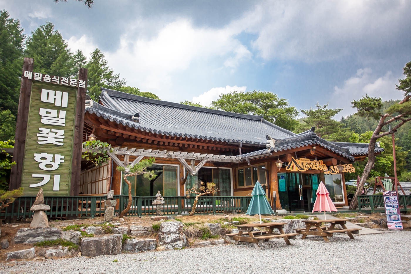 단풍이안녕하세요! 평창 휘닉스파크에 방문했다가 근처 맛집을 찾던 중 메밀국수와 수육을 함께 판매하는 메밀꽃향기에 방문했습니다 :) 내돈내산 후기 시작합니다~ 평창 휘닉스파크맛집 메밀꽃향기 영업정 위치 평창 휘닉스파크에서 차로 8~10분정도 걸립니다. 제가 다녀간 날은 눈이 많이 온 날이라 언덕이 많거나, 제설이 잘 안되어있으면 어쩌나 했는데 언덕도 별로 없고 제설도 너무 잘 되어있어서 차로 가기에 전혀 무리가 없었습니다! 주차 아주아주 ~ 넓은 주차장이 있어서 주차는 걱정 안해도 됩니다! 만약 성수기에, 주말+식사피크타임 겹치면 조금 모자를수도 있을 것 같네요... 영업시간 월~일: 9시 30분~ 19시 30분 매주 목요일 휴무 입니다! 평창 휘닉스파크맛집 메밀꽃향기 평일 웨이팅 평창 휘닉스파크 맛집 메밀꽃 향기에 화요일 오전에 방문했습니다. 11시쯤에 도착했는데 저희가 첫손님이었어요! 찾아보니 네이버 예약도 되더라구요!! 웨이팅이 싫으신분들은 예약하고 방문하시는걸 추천드립니다~ 여름 성수기에는 네이버예약을 이용하셔도 대기표를 받고 순서대로 입장이 가능하다고 합니다. 대기 명단도 있는걸 보니, 주말이나 성수기에는 대기가 좀 있을 것 같아요. 저는 11시에 방문했을 때 첫손님이었지만, 12시 되자마자 거의 만석이 됐었어요! 이점 참고해주세요~ 평창휘닉스파크 맛집 메밀꽃 향기 내돈내산후기 내부는 고즈넉한 한옥 느낌이어서 아늑하니 너무 좋았어요. 골동면: 고소한 비빔면 (들기름 간장 비빔면 느낌) 메밀국수 물, 비빔 묵사발, 묵비빔밥, 냉제육, 수육 등 다양한 메뉴가 있습니다! 주문은 키오스크로 하고 선결제로 진행합니다. 네이버리뷰 이벤트로 메밀과자 또는 음료를 서비스로 주십니다!! 메밀과자 먹어봤는데 슴슴하니 건강간식 느낌이라 맛있었어요 ㅎ 저는 메밀 막국수 물(11,000원), 비빔(11,000원), 수육(20,000원)을 주문해서 42000원 나왔습니다 :) 정갈하니 너무 깔끔하게 잘나오죠!? 수육은 따듯하고 촉촉하니 맛있었어요. 엄청 부들부들한 느낌은 아니고 약간 식감이 있는 편이었습니다. 백김치는 시원해서 수육, 메밀국수와 잘어울렸어요! 수육을 먹으며 특이했던 점은 메밀을 같이 주시더라구요! 새우젓 찍고 메밀을 찍은뒤에 수육을 먹으니 메밀 식감이 느껴져서 특이했습니다 :) 메밀이 씹힐때마다 고소한 메밀 향기가 나는 것도 참 좋았어요~ 메밀국수 (물)버전은 메밀면에서 고소한 메밀 향기와 육수가 맛있었어요! 들기름이 들어갔는데 들기름 향이 너무너무 고소해서 맛있었습니다...