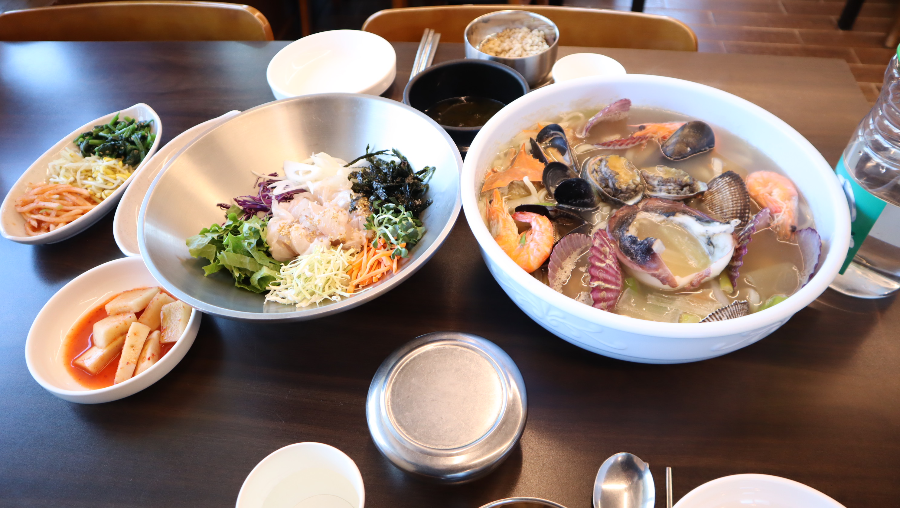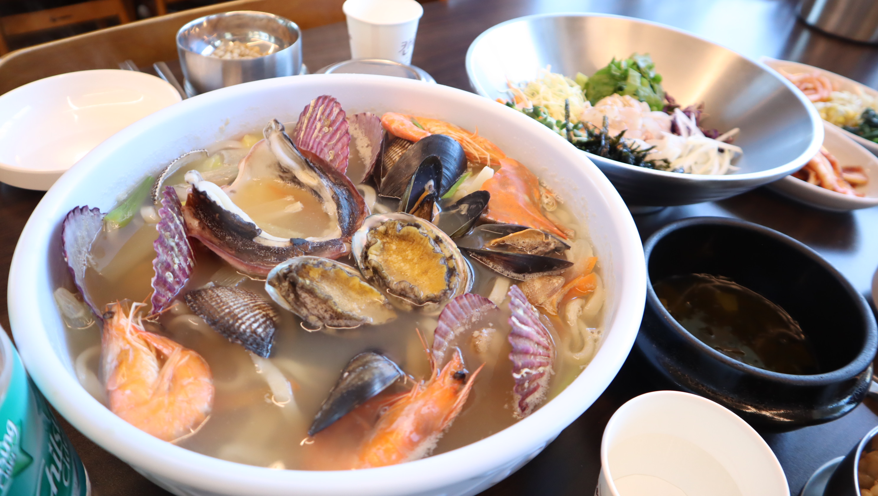 peony5879아이들과 드라이브갔다가 우연히 들렀어요. 주변에 식당들이 많았는데 멀리서도 깨끗하고 아늑한 느낌의 식당건물이 눈에 띄어서 아무런 정보없이 들어왔네요^^ 아주아주 친절하신 사장님의 서비스에 감동받았고 매장 곳곳이 흠잡을데 없이 깨끗한 모습에 또 감동 받았어요. 개인적으로 위생에 아주 큰 비중을 두고있는지라 오픈형 주방도 마음에 들었습니다. 횟집을 경영하시다가 칼국수가게로 전업하신지 한달정도 되셨다고하는데요. 그 말씀을 들으니 회비빔밥을 주문하지않은게 후회되더라고요~ 메뉴는 점점 확대해가실 계획이라고합니다.저희는 해물칼국수를 2인분, 바지락칼국수 3인분에 알밥도 주문했네요. 칼국수가 나오기 전에 꽁보리밥도 주셔서 맛나게먹었고 칼국수에 해물도 엄청많았어요. 회비빔밥먹으러 또 갈게요! 번창하세요^^
