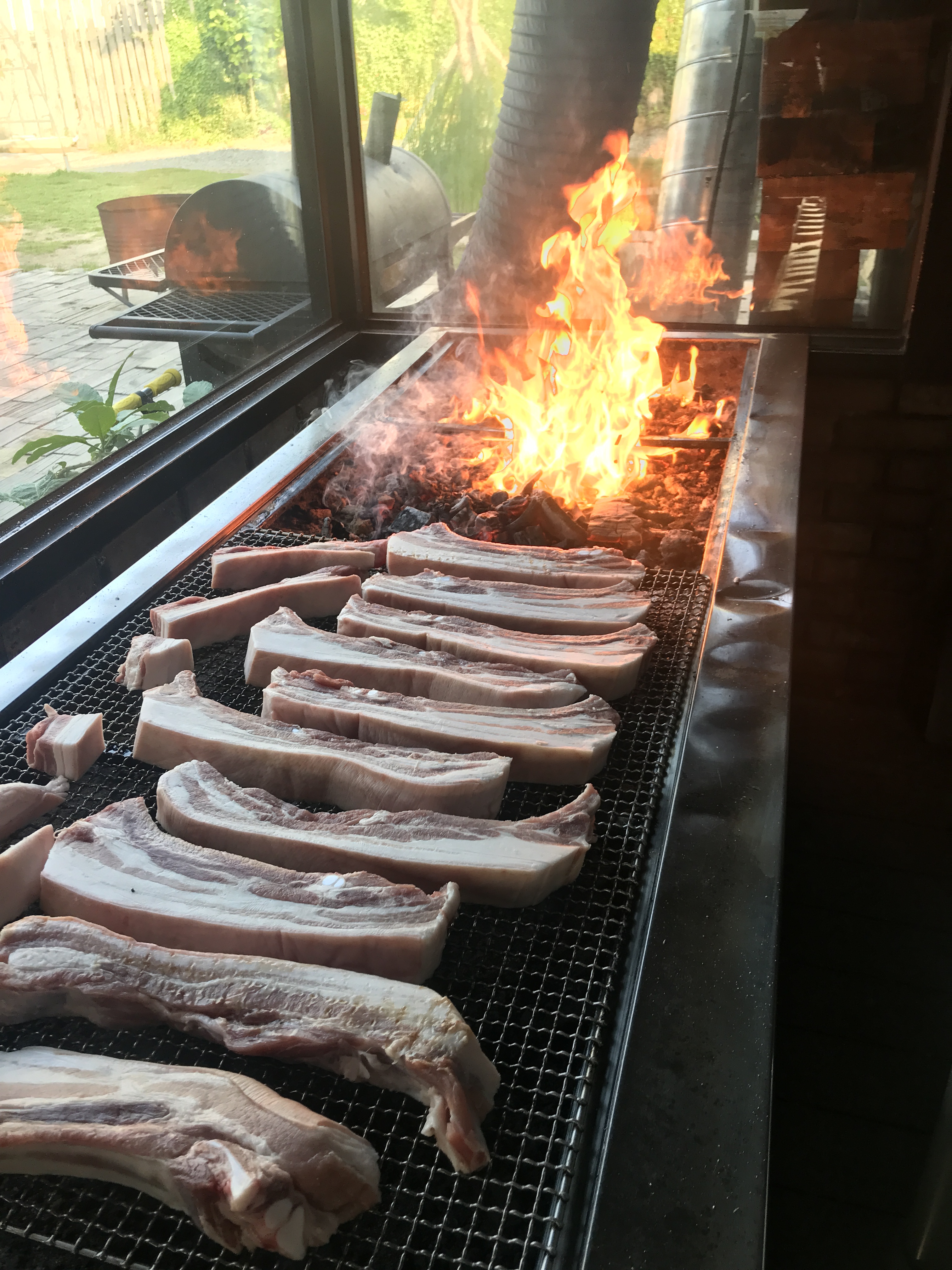 오이양녹슨드럼통 부산 강서구 경전철로 233-2 ⏰ 화-토 16:00-23:00 ⏰ 일 16:00-22:00 ✅ 매주 월요일 휴무 ️ 주차 가능 대저 야외 바베큐 고기집 녹슨드럼통에 다녀왔어요 너무 유명한 고깃집이라 부산 분들이면 다 알듯한 녹슨 드럼통!!! 야외바베큐집의 원조에요 ️ 주차는 가게 앞 주차 주차는 가게 앞에 큰 주차장이 있어서 널찍하게 주차 가능합니다 수요일에 방문했는데도 손님이 많았어요 회식하는 테이블도 있고 가족단위 손님들도 많고 내부도 커서 단체로 방문하기 좋습니다 녹슨드럼통 메뉴판입니다 1인 세트부터 6인 세트까지 있어서 인원수에 맞게 주문하고 부족하면 고기 추가하면 됩니다 식사 메뉴로는 잔치국수, 열무국수, 비빔국수, 된장찌개, 미역 라면, 어묵 꼬치 국물까지 있습니다 아이들이 많이 와서 어묵도 있는 듯...!!! 녹통바베큐 2인 열무국수 된장찌개 녹슨드럼통은 처음 세팅 빼고는 전부 셀프 코너 이용하면 됩니다 신선한 야채부터 밑반찬부터 김치까지 푸짐하게 있습니다 너무 맛있게 먹은 직접 담근 김치 마늘, 고추, 양파, 고추다대기 등등 부족한 찬은 직접 가져오면 됩니다 다양한 채소도 종류별로 있어요 기본적으로 5-6가지가 있어서 좋았어요 건강하게 먹는 느낌! 커다란 불판 옆에 차려진 기본 찬 중간에 숯불이 들어오고 가장자리에서 먹어요 진짜 놀러 와서 야외에서 차려 먹는 느낌이에요 즉석에서 바로 만들어주는 양배추 겉절이 양배추, 배추, 부추, 당근이 들어있는데 파 절임보다 달달하니 맛있었어요 6가지 쌈 채소들 부족한 쌈 채소는 셀프 바를 이용하면 됩니다 부산 바베큐 맛집 녹슨 드럼통에서 직접 담근 김치까지 같이 나옵니다 드디어 불도 들어오고~~~ 불이 있어서 그런지 생각보다 춥지는 않았어요 이 맛에 바베큐 먹는거쥐,,, 콜라도 병 콜라가 있어서 반가움 오랜만에 보는 병 콜라 곧이어 나온 녹통바베큐 고기 800g에 가니쉬까지 같이 나와요 곁들여먹을 가지, 새송이버섯, 감자랑 껍데기도 따로 나옵니다 구운 고기는 바로 불판으로 부어줍니다 고기는 가장자리에 두고 먹을 만큼 불판 가운데서 구워 먹으면 됩니다 1차로 80% 정도 초벌해서 나와서 불판 가운데에서 조금만 익혀 먹으면 돼요 1차로 초벌해서 불향이 강하게 나요 부산 바베큐 맛집 찾는다면 추천 !!! 맛있게 익어가는 중 고기 찍어 먹을 멜젓도 같이 나옵니다 숯 향이 강하게 배여서 바베큐향 열심히 굽는 오빠,,,ㅋㅋㅋㅋ 불판이 커서 그런지 집게도 엄청 큰 거 주심 마늘 구워 먹으려고 하니까 직원분이 참기름 한가득 부어주심...