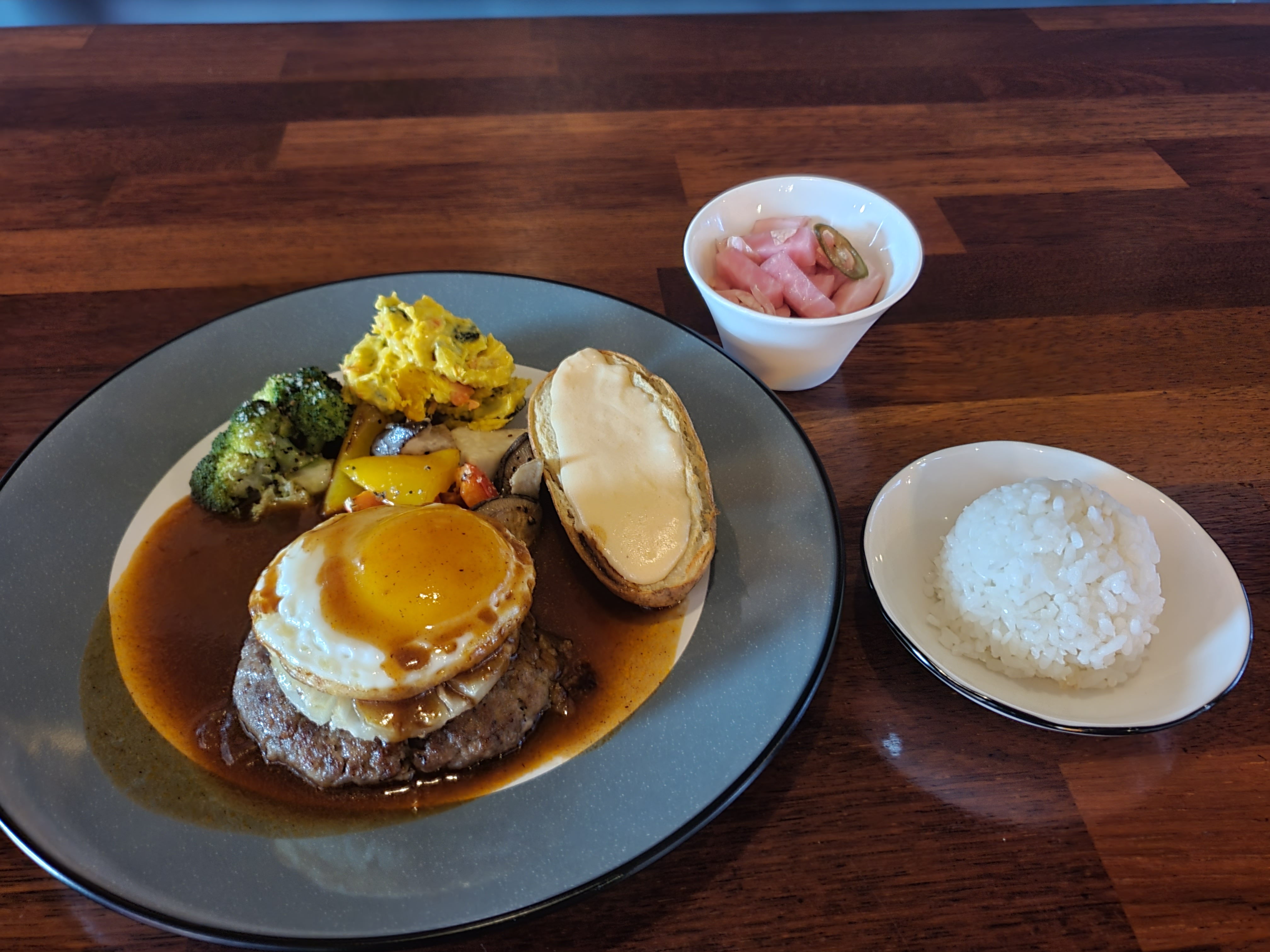 jini3830맛있어요~ 지나가다가 늘 불이 꺼진줄 알고 못갔었는데 매우 만족스러운 점심이었습니다! 버거의 패티는 양념이 잘 배어있어서 입안에서 육즙이 터질 때 꽉차는 느낌이었고, 햄버거에 나오는 감자는 짠맛이 덜해서 좋았습니다. 알리올리오는 마늘향이 조금 더~ 강하면 좋았겠다는 개인적 느낌!