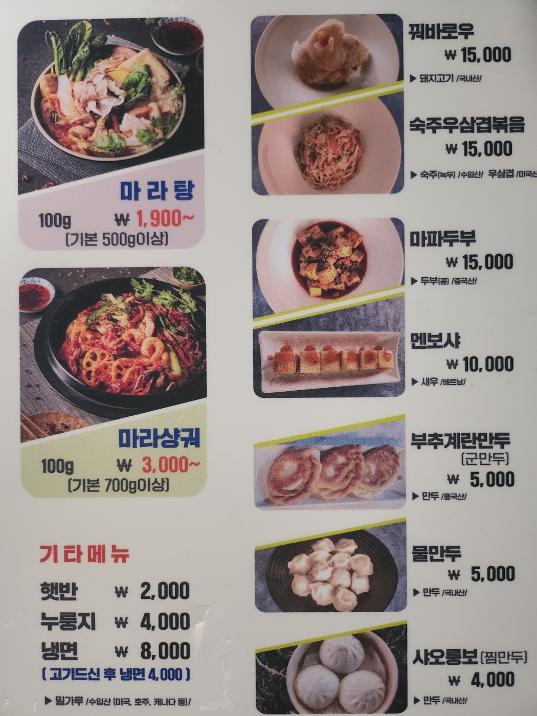 - 마라탕(100g) 1,900원