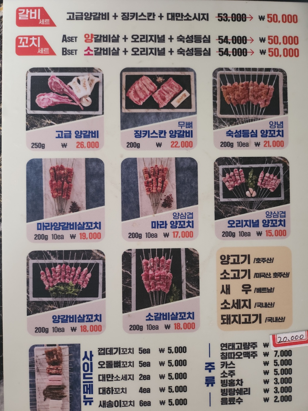 - 오리지널 양꼬치(10ea) 15,000원