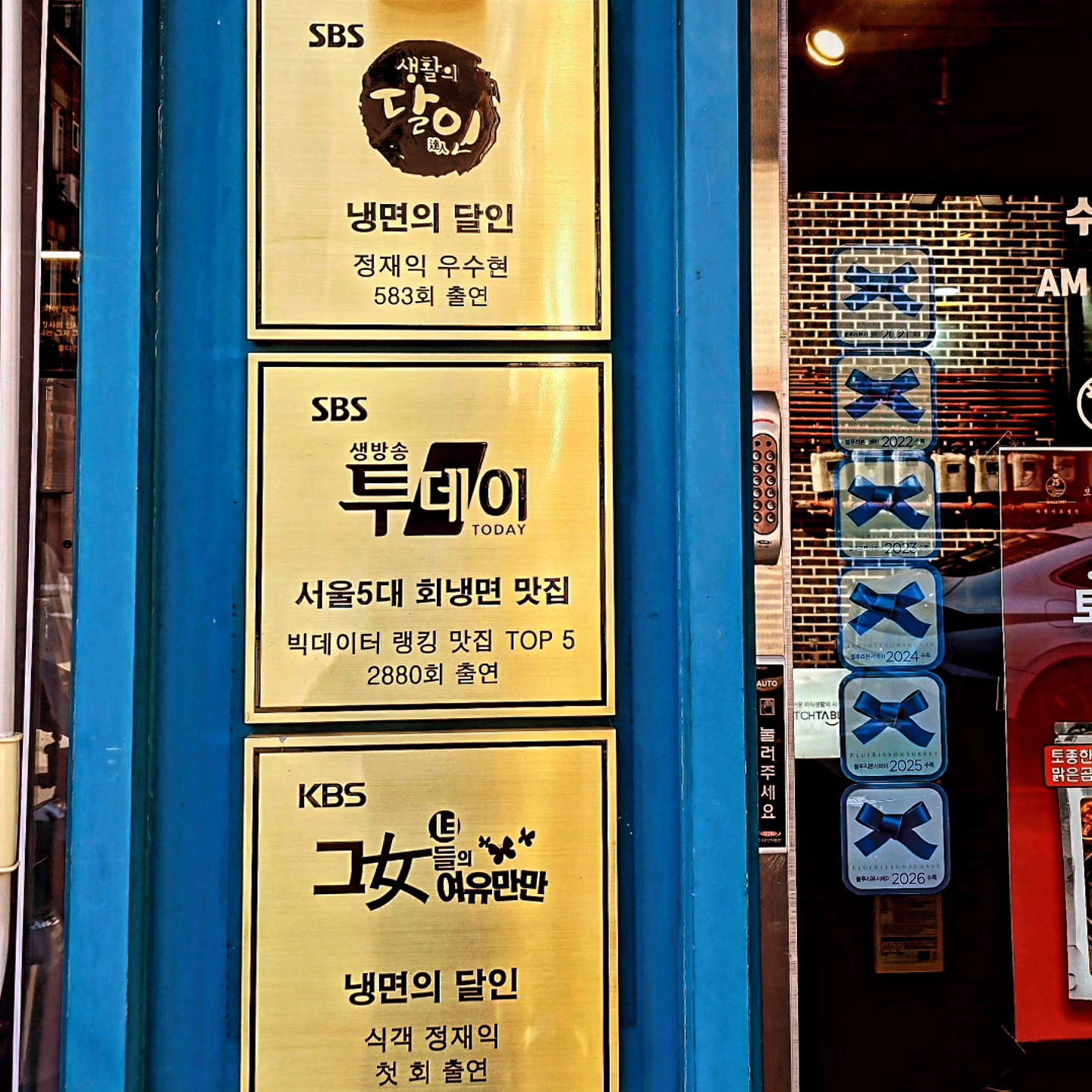스텔스안녕하세요 여기저기 구석구석 맛집을 알리고 싶은 스텔스예요 노원 맛집에서 빼놓으면 섭섭한 이곳! 6년 연속 블루리본 서베이 선정된 노원의 자랑 수락이오냉면인데요 노원에서 오래 사랑받아온 냉면 맛집을 찾고 있다면 한 번쯤 꼭 들어봤을 이름 수락이오냉면 노원본점이에요 6년 연속 블루리본에 선정될 만큼 맛과 내공을 모두 인정받은 곳으로 계절을 가리지 않고 꾸준히 발길이 이어지는 노원 대표 냉면 맛집이죠 자극적이지 않으면서 깊은 육수의 맛과 면 한 가닥까지 신경 쓴 정직한 한 그릇 덕분에 첫 방문 이후 단골이 되는 손님들도 많더라고요 오늘은 노원 맛집으로 손꼽히는 수락이오냉면 노원본점을 직접 방문해 왜 블루리본 서베이에 이름을 올렸는지 냉면 한 그릇에 담긴 매력을 차분히 느껴보고 싶어서 방문했어요 냉면 좋아하는 분들이라면 분명 공감할 기본에 충실한 맛의 힘을 하나씩 소개해 볼게요 겨울에 먹는 냉면이 진짜 맛있는 거 아시죠? 이곳은 6년 연속 블루리본 서베이에 선정된 노원 냉면 맛집 수락이오냉면 노원본점입니다 수락이오냉면 노원본점은 수락산역 4번 출구 도보 약 10분 거리 도보로 이동하기 좋은 적당한 위치에요 번화한 대로에서 살짝 벗어난 자리지만 주택 밀집 지역과 주변에 익숙한 상권 그리고 유동 인구가 많은 편이라 낮에도 밤에도 길 찾기가 수월해요 노원 수락이오냉면 주차장은 건물 옆으로 4대 정도 공간이 있어서 자가용으로 방문해도 주차 가능해요 다만 주차 공간이 크지 않아 점심, 저녁 식사 시간대에는 주차장이 금방 차는 경우가 많아요 여유 있게 방문하려면 식사 피크 타임을 피하거나 가까운 유료 주차장을 이용하셔야 해요 블루리본 맛집답게 웨이팅 그리고 주차전쟁을 치르셔야 해요 수락이오냉면 노원본점은 오랜 시간 지역 주민들과 냉면 애호가들의 사랑을 받아온 곳으로 다양한 방송 프로그램을 통해 그 맛과 가성비가 여러 차례 소개된 노원 방송 맛집이기도 해요 SBS 생활의 달인과 생방송 투데이 등 노원을 대표하는 맛집으로 지역 내 높은 인지도와 신뢰도를 다시 한번 입증한 식당이기도 해요 매장 한쪽 벽에 가지런히 부착되어 있는 블루리본 서베이 인증 스티커는 수락이오냉면 수락산의 오랜 시간을 그대로 보여주는 증거이기도 해요 단발성이 아닌 6년 연속 블루리본 선정 이라는 문구가 눈에 들어오는 순간 왜 노원 대표 냉면 맛집으로 불리는지 자연스럽게 고개가 끄덕여지기도 해요 해마다 다시 평가받고 다시 선택받아야만 유지할 수 있는 블루리본을...